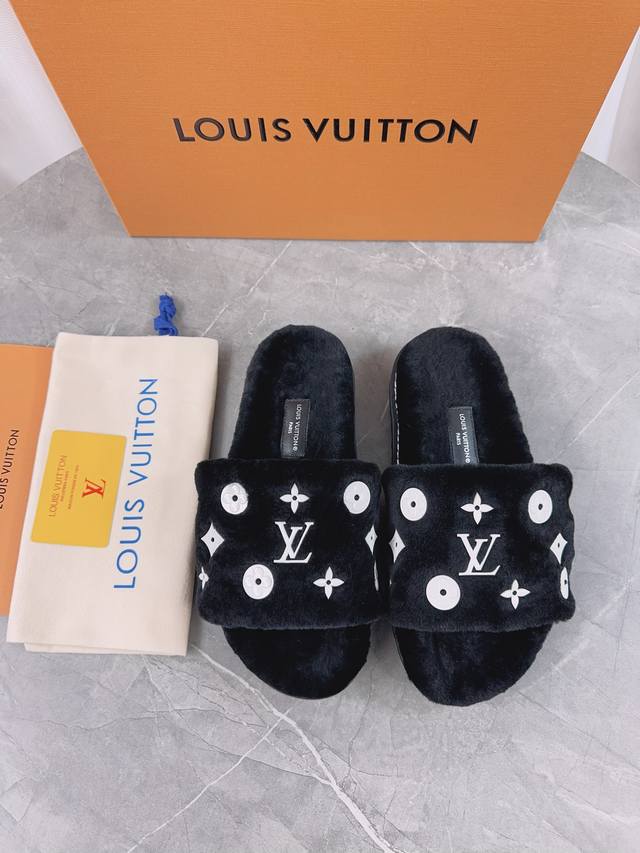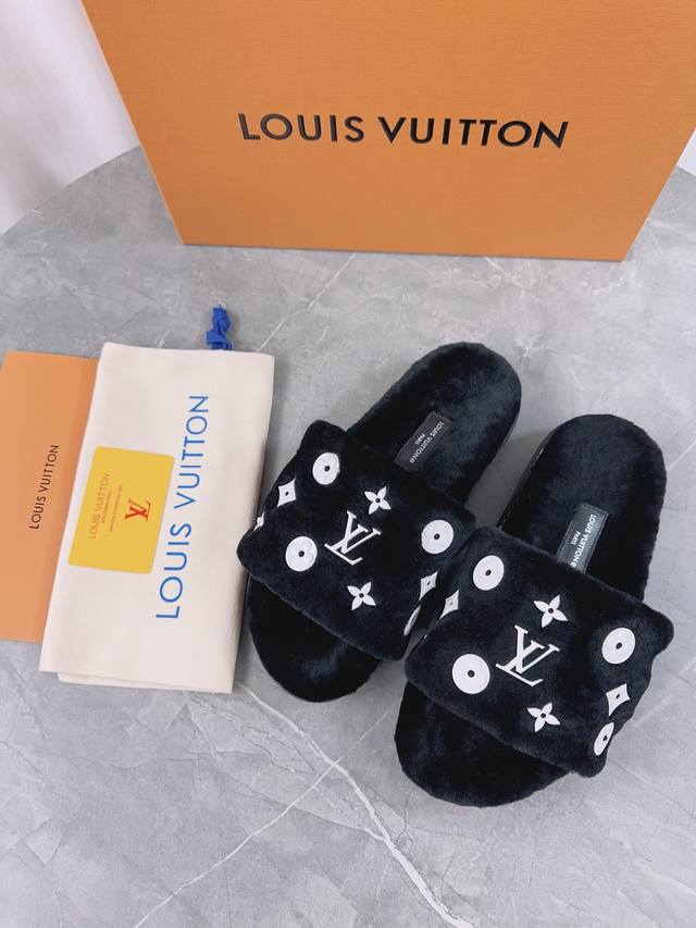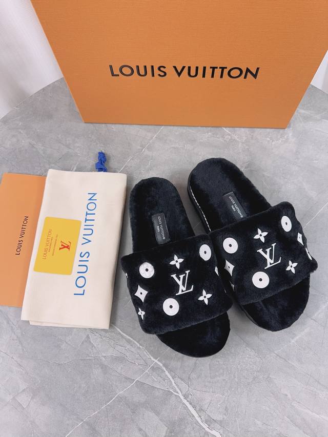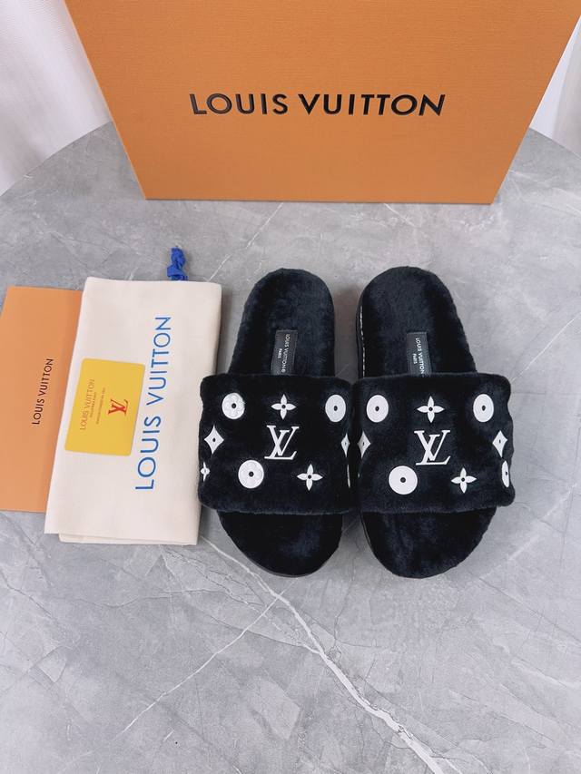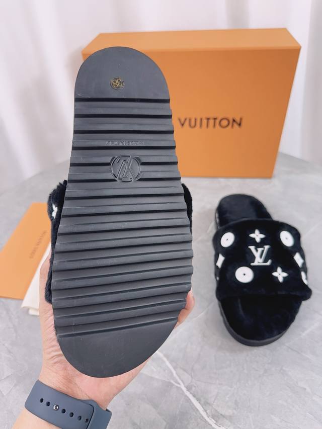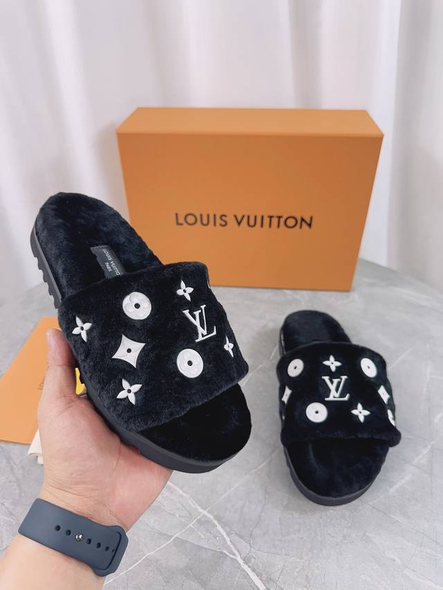 Louis Vuitton (LV) New Wool Slippers - Soft and Fine Wool, Top Quality Pure Wool Straight Hair! Super warm, wearing them feels like walking on clouds. The classic LV monogram embellishments are exquisite and sophisticated, instantly elevating the value of these slippers! The sole is an original molded EVA foam non-slip outsole, very comfortable and non-slip, and the sole has a certain thickness for excellent comfort! Upper: Original Australian Wool Lining: Australian Wool Insole: Australian Wool Outsole: Original Foam Sole Height: 3.5cm Packaging: Original Drawer Box Sizes: 35-40, 34, 40, 41 (Custom orders are non-refundable) Color: Official website synchronized color batch: