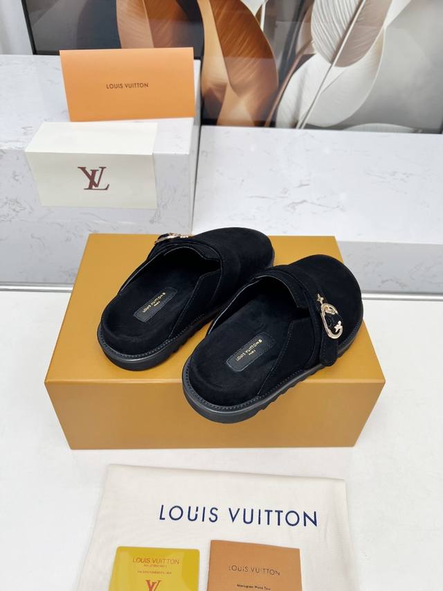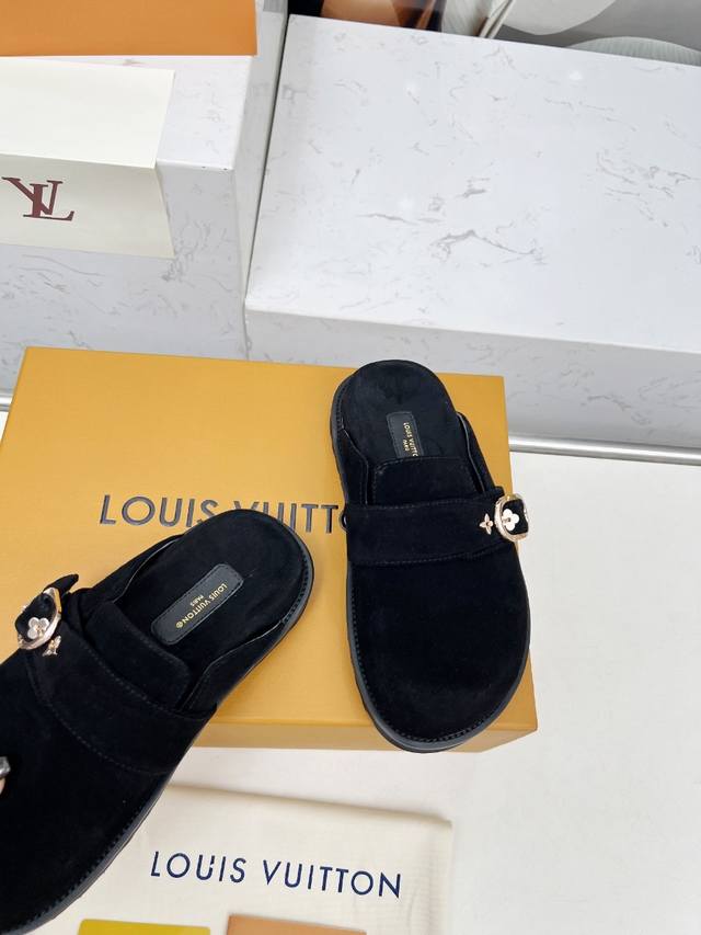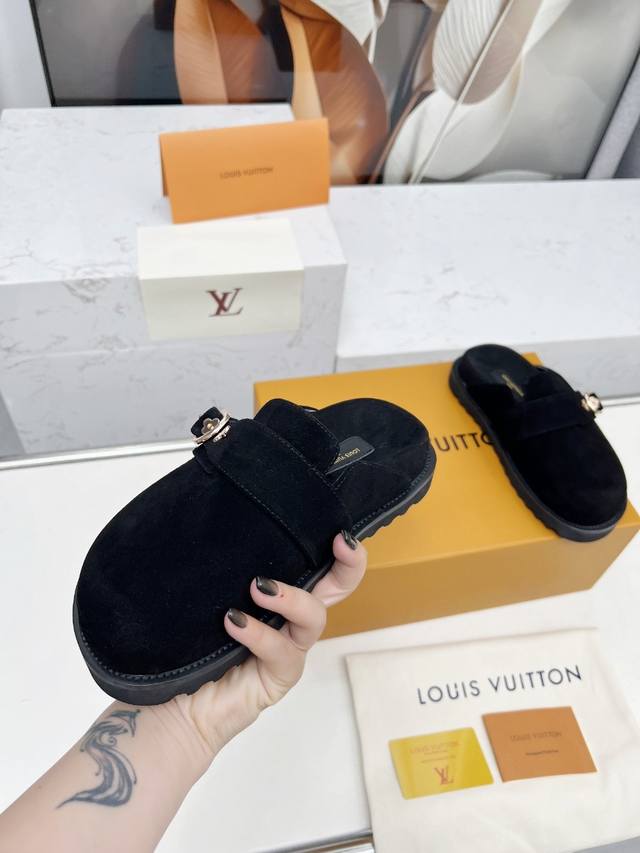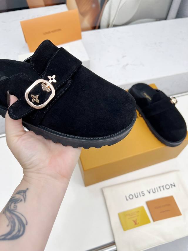 Louis Vuitton New Winterbreak Comfers (Closed-Toe Slip-On) Features a leather upper adorned with the monogram and floral pattern, paired with a lambskin lining. Suitable for both indoor and outdoor wear. Made with high-density foam platform material, lightweight and comfortable, the thick sole provides a good height boost! Sizes: 35-45#