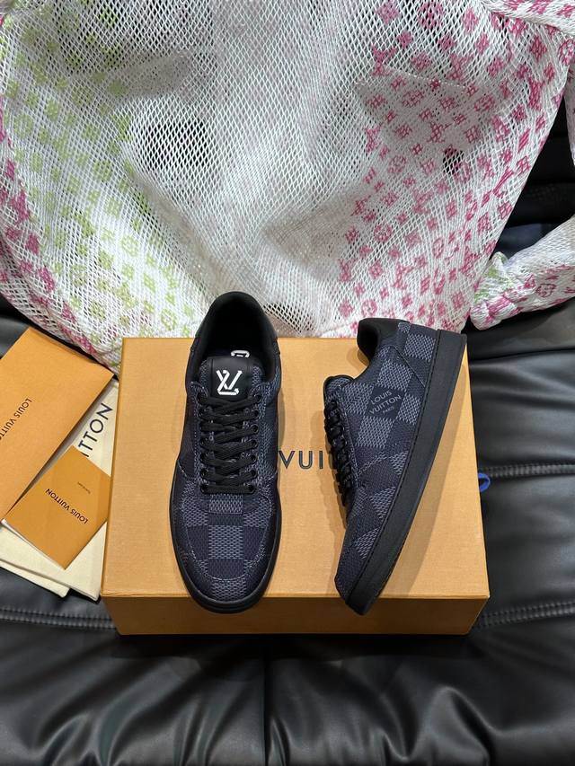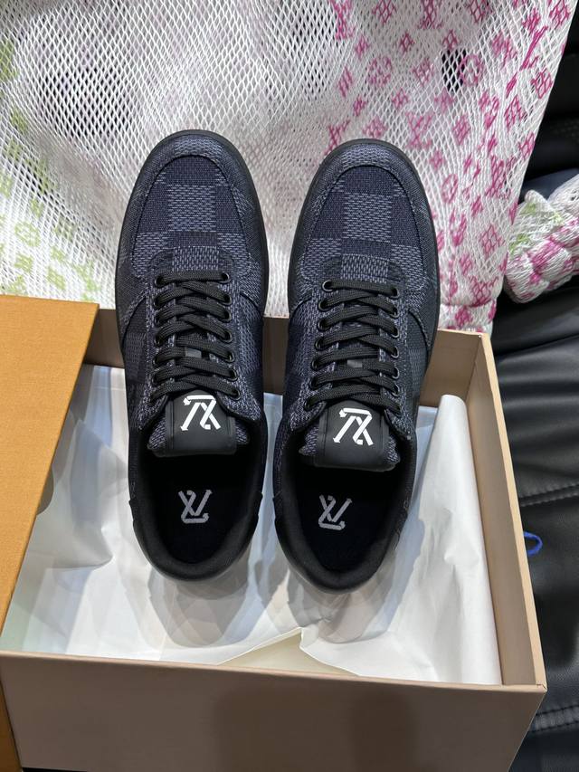 Louis Vuitton Rivoli Men's Low-Top Casual Sneakers. The classic checkerboard pattern is timeless. This eco-friendly Rivoli sneaker is made from 90% sustainable materials, incorporating recycled polyester with the iconic Damier jacquard, and featuring a recycled polyurethane outsole. The upgraded Louis Vuitton logo adorns the tongue, while the sides and heel are decorated with the Louis Vuitton logo. Comfortable, durable, and versatile, suitable for all seasons, a simple yet stylish piece! Size: 38-44