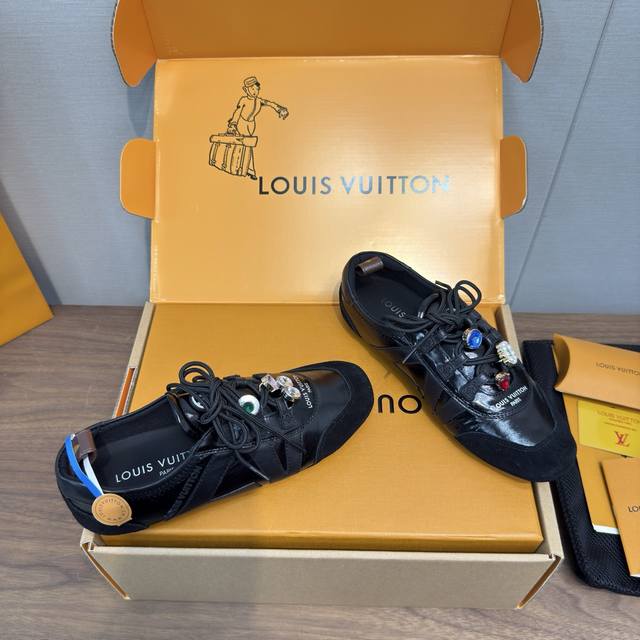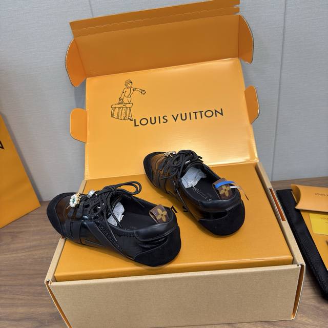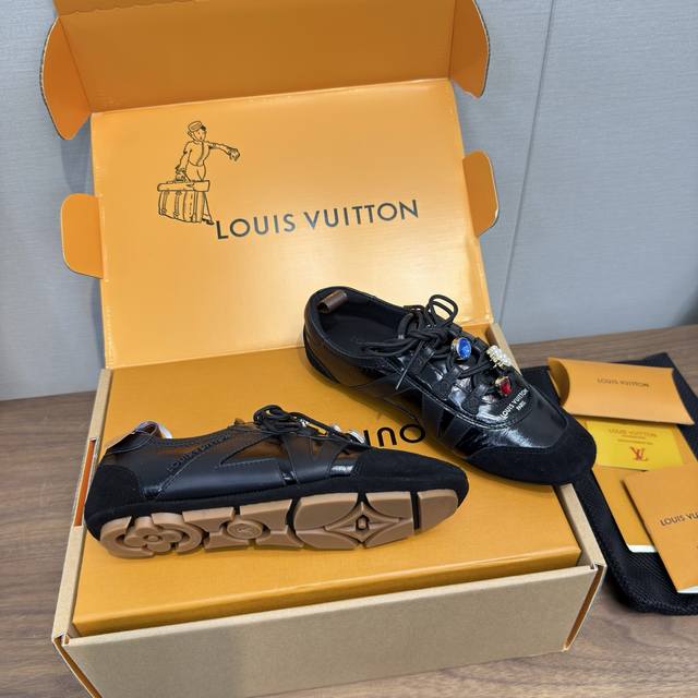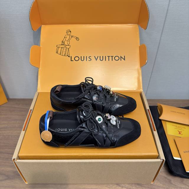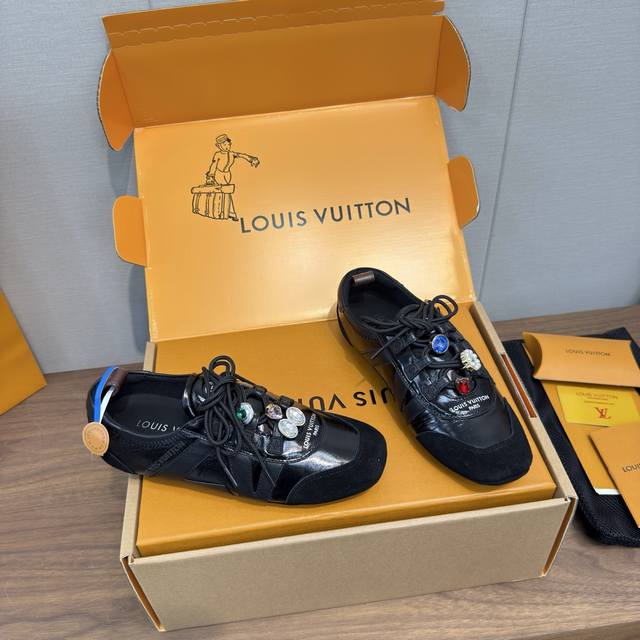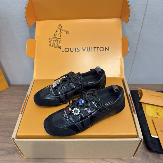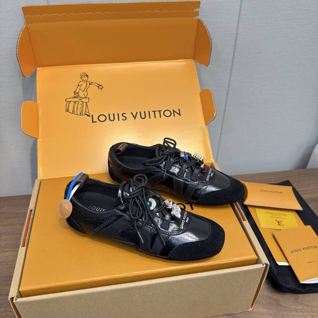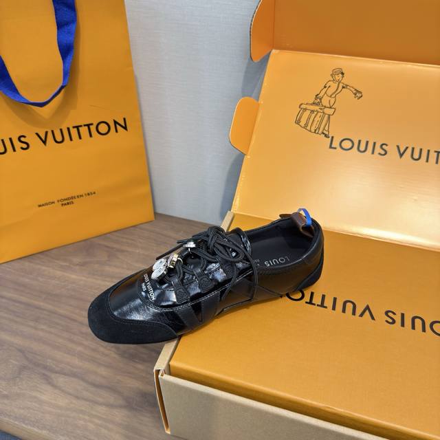 Louis Vuitton Spring/Summer Sneakerina Series Ballet Style Sneakers, Casual Shoes, Couple Style DDD High-Quality Packaging and Accessories Buckle 70 DDD Perfectly replicates the Sneakerina ballet style sneakers. The silky suede cowhide leather creates a smooth silhouette, combining the lightness of ballet shoes with the comfort of athletic shoes. DDD The Lv logo on the side and Monogram canvas heel strap add rich detail. Sacchetto craftsmanship and TPU outsole upgrade for a softer wearing experience DDD Sole thickness: 1.5cm Material: Original custom imported top-grain cowhide Lining: Original custom breathable mesh lining Outsole: Original molded injection-molded TPU material DDD Sizes: Women's 35-41, Men's 39-45, Women's 40, 41, 45 (custom made) DDD