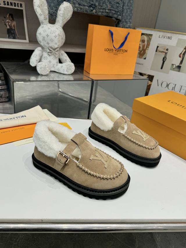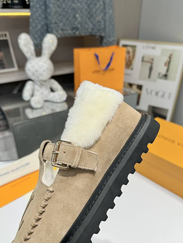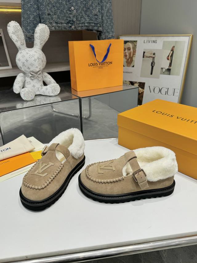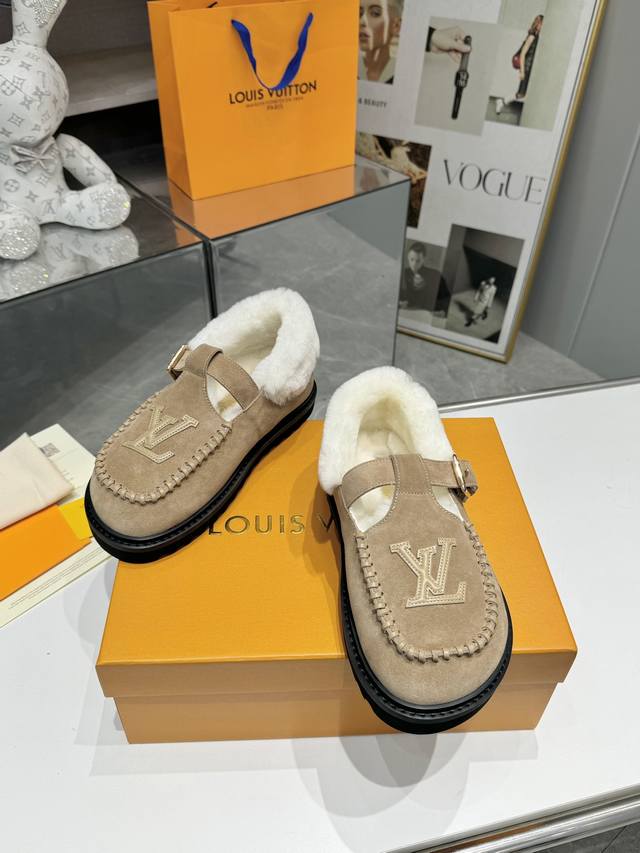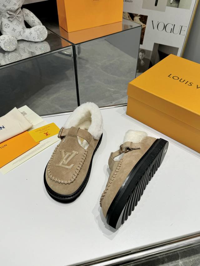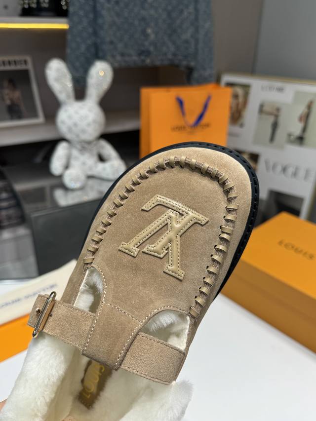 Louis Vuitton Super Versatile Birkenstocks - A classic reinvented, full of vitality, more comfortable and stylish. Material: Top-grain imported cow suede + original hardware accessories; Lining: High-grade wool; Sole: PU foam outsole + PU platform; Packaging: Original complete set of new color drawer box; Sizes: 35-42; Factory Price: