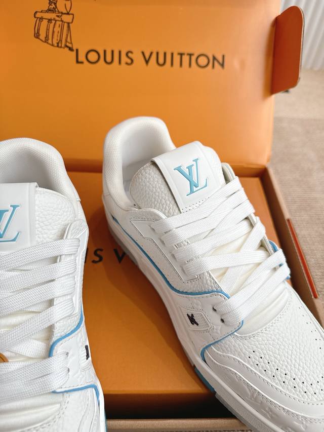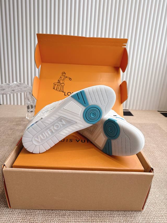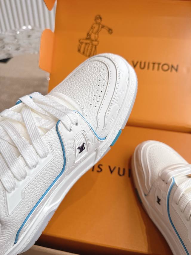 The Lvx Tyler collaboration launches the Trainer, continuing Virgil Abloh's classic design based on vintage basketry. The cowhide leather upper incorporates Cray Monogram embossing and logos, showcasing Tyler's playful interpretation of the Monogram pattern and brand elements