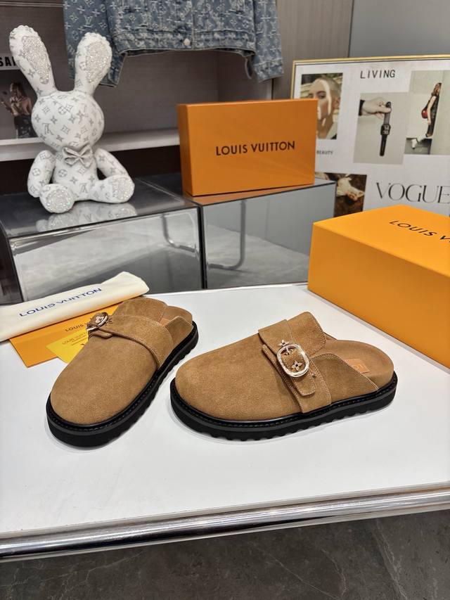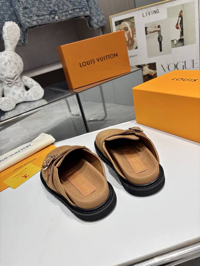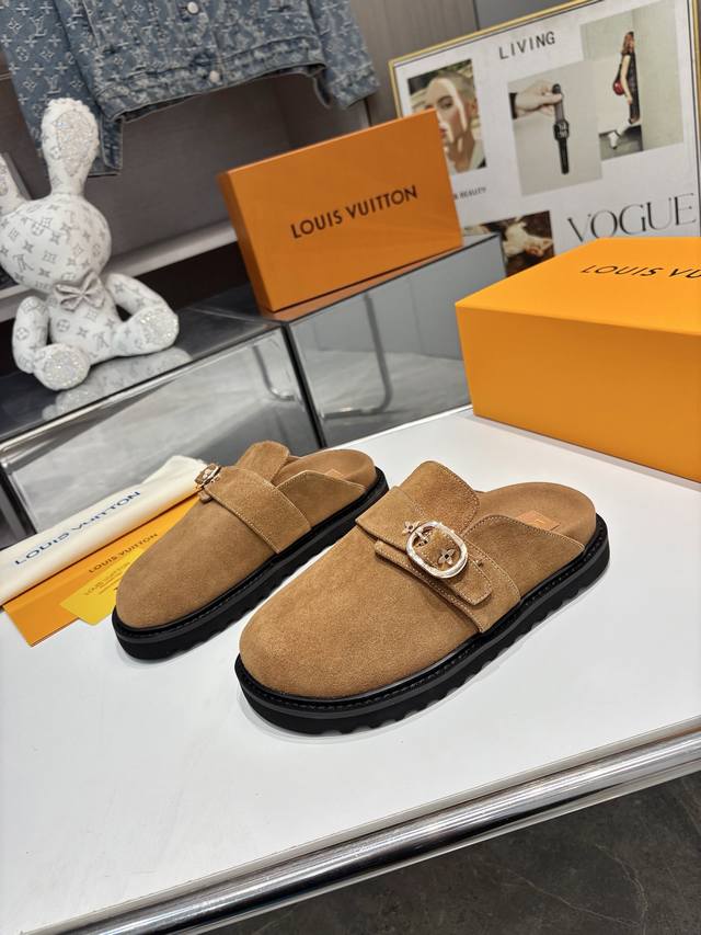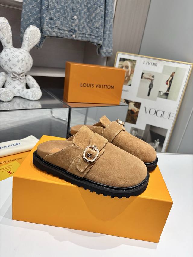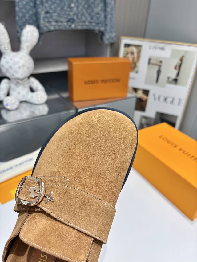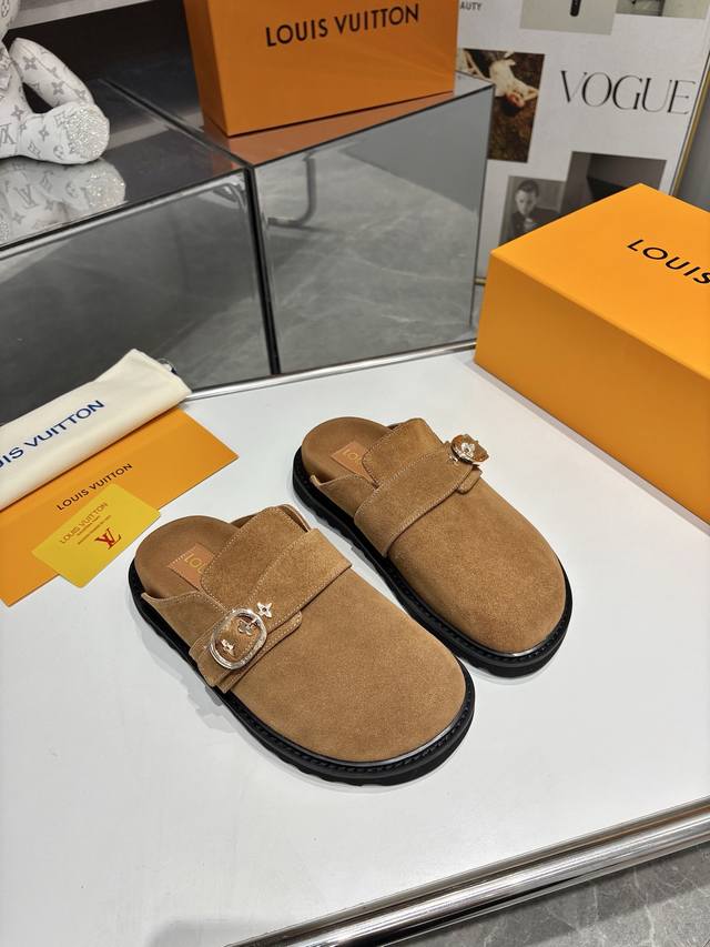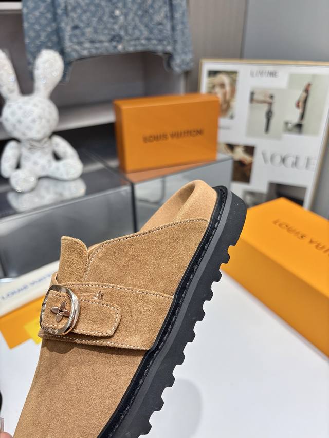 Louis Vuitton To-Go Comfort Series Monogram Birkenstock Closed-Toe Sandals. Original purchase and re-production. The Louis Vuitton To-Go Comfort sandals are made of Monogram canvas, combining comfort and style. Adjustable laces are adorned with the Louis Vuitton logo, and the lightweight rubber outsole incorporates the wave design of the Louis Vuitton Archlight sneakers. Comes with exquisite boutique packaging. Material: Original custom-made top-grain cowhide. Lining: Imported soft sheepskin. Outsole: Original molded anti-slip TPU material. Sole thickness: 3cm. Size: Women's 35-41, 40, 41 (custom made). Price: [Price not specified]