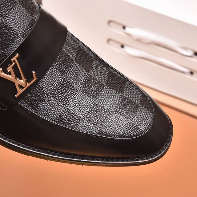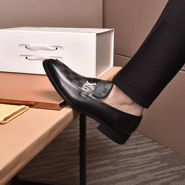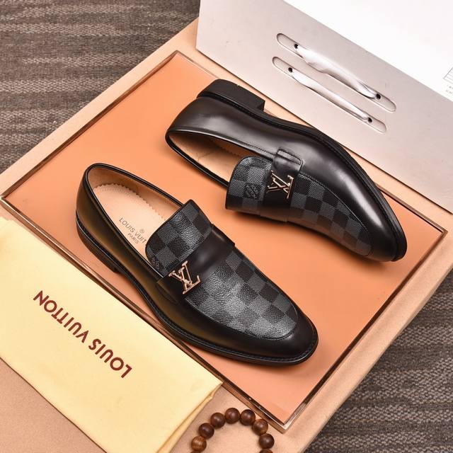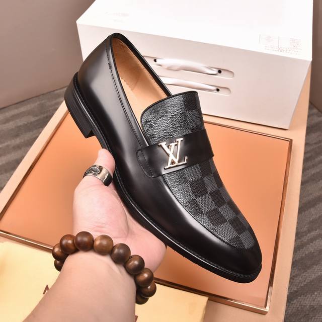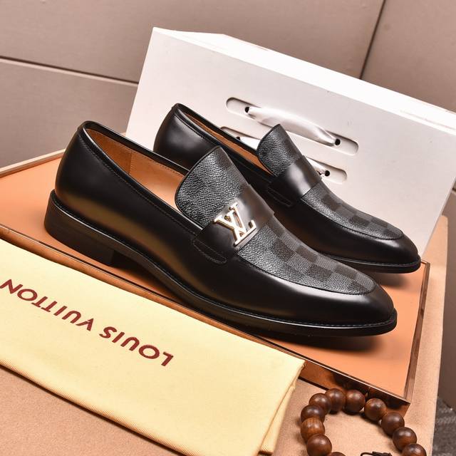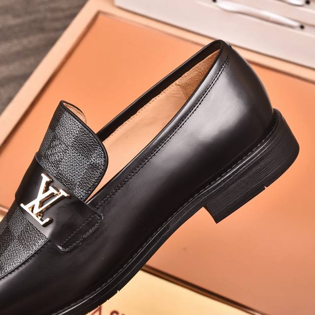 Louis Vuitton Water-dyed Calfskin* High-end Louis Vuitton latest style formal business leather shoes, original quality! Imported Italian calfskin upper, cowhide lining, original outsole, formal size: 3845