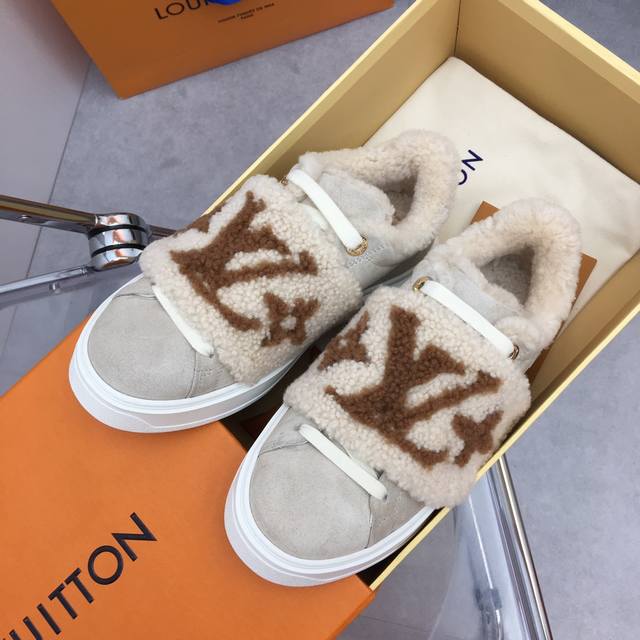 Louis Vuitton Wool Platform Sneakers DDD Latest Velcro Colorway! Super warm wool lining, incredibly stylish on the feet, and the printed logo on the shoe body exudes understated elegance. 4cm thick sole instantly elongates the legs. A must-buy, top-quality DDD The upper is made of genuine leather and wool, with a delicate texture comparable to the original! The insole is made of the same wool as the original. Original mold TPU outsole, consistent quality, impeccable details. Please distinguish this from cheap goods on the market DDD Size: 35-41 Full packaging DDD Sizes 40 and 41 (custom orders) are non-refundable and non-exchangeable DDD