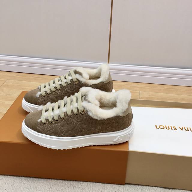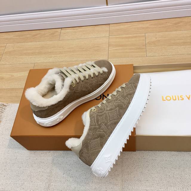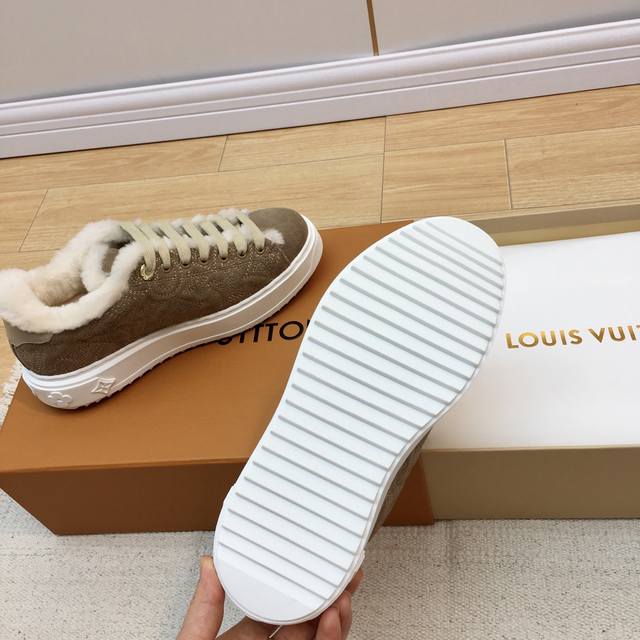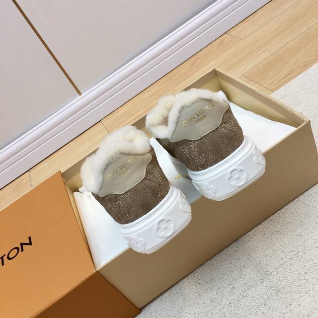 Louis Vuitton Wool Platform Sneakers DDD New Autumn/Winter Style! Super warm wool lining, incredibly stylish on the feet, and the printed logo on the shoe body exudes understated elegance. The 4cm thick sole instantly elongates the legs. A must-buy, top-quality DDD The upper is made of genuine leather and wool, with a delicate texture comparable to the original! The inner lining is made of the same wool as the original. Original mold TPU outsole, consistent quality, impeccable details. Please distinguish this from cheap goods on the market DDD Size: 35-41 Full packaging DDD Sizes 40 and 41 are custom-made and cannot be returned or exchanged DDD