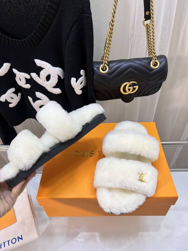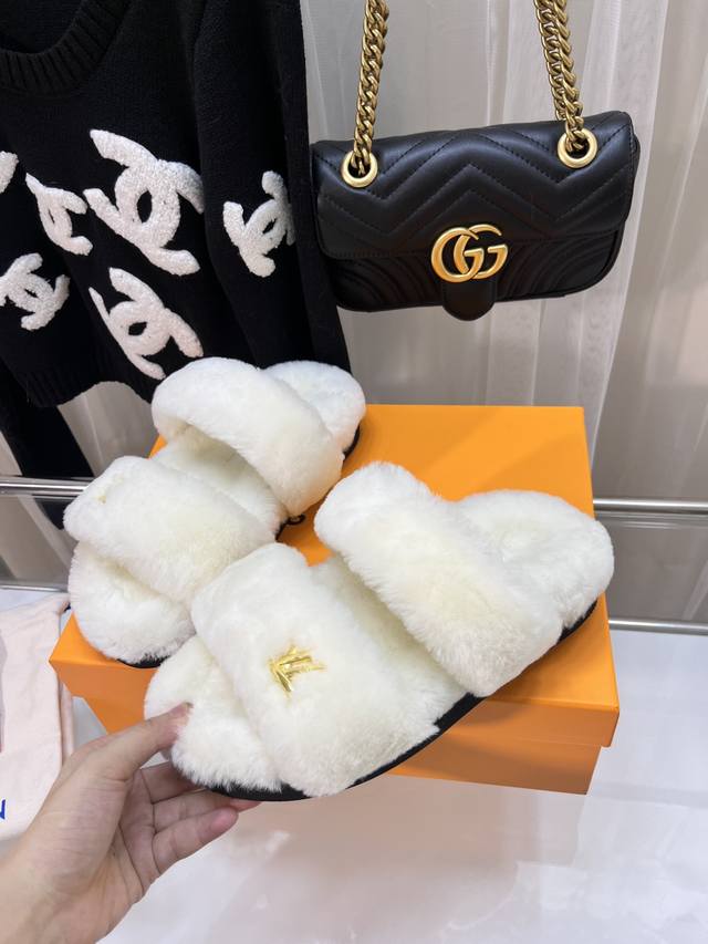 Louis Vuitton Wool Slippers - Official Website Synchronized with Boutique Quality DDD New Louis Vuitton Double-Strap Metal Buckle Wool Slippers - Soft and Fine Wool DDD Top Quality Pure Fur Strap ...