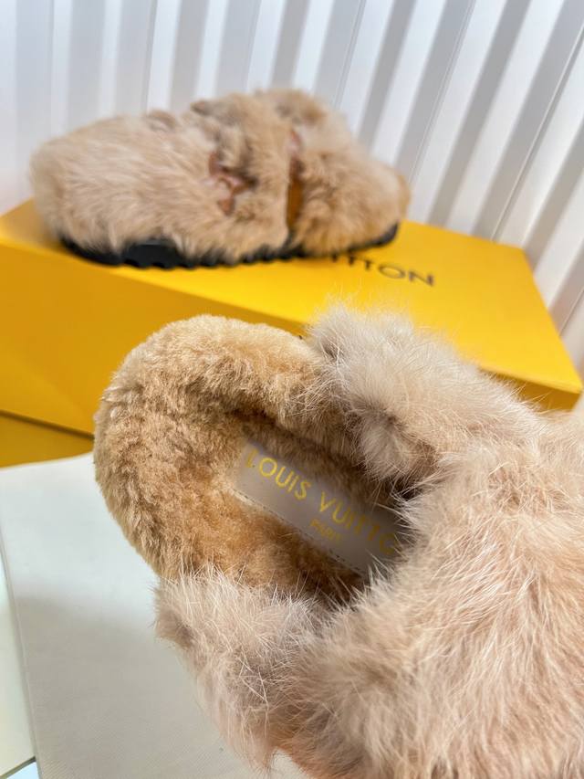 Louis Vuitton*Lv New Sheepskin Slippers, sheepskin upper, sheepskin insole, foam sole, sizes 35-39, 40-42, custom made, no returns or exchanges DDD