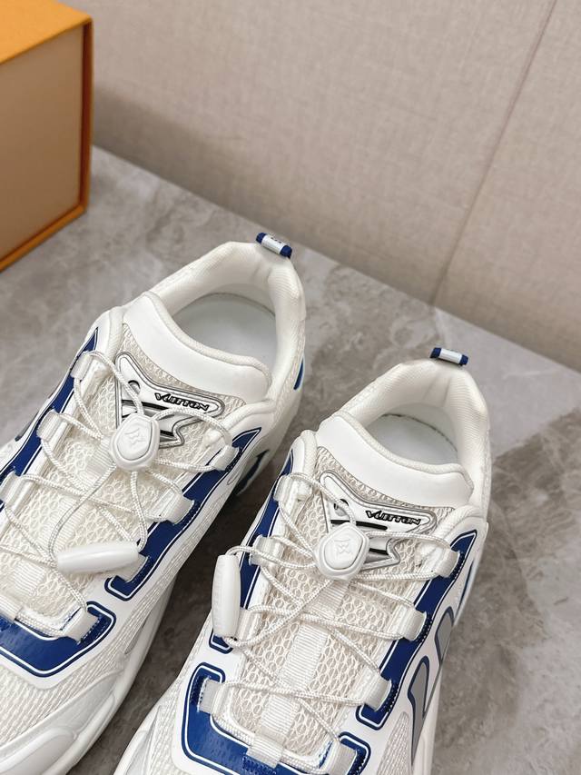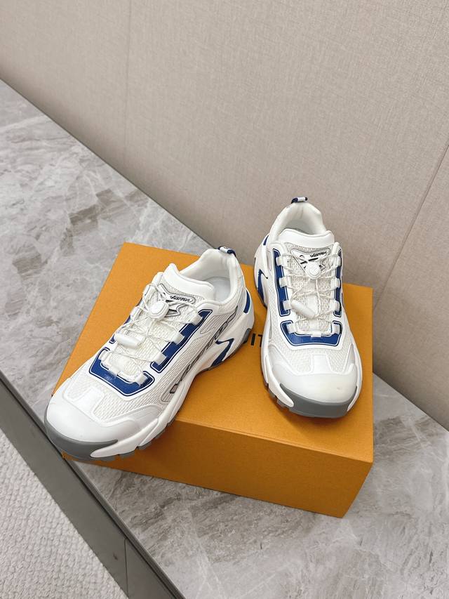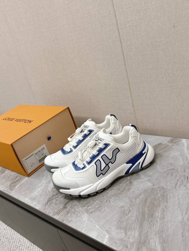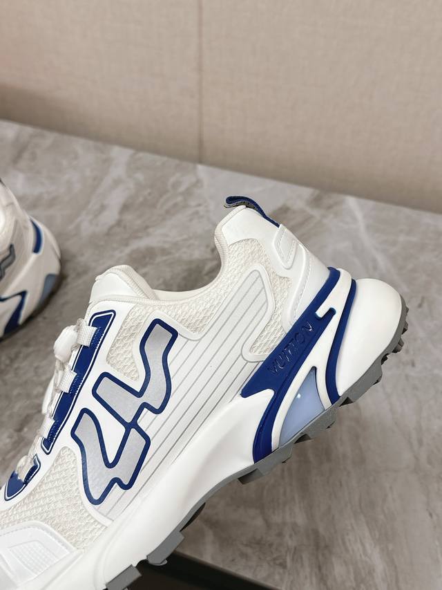 Louis Vuitton's latest sneakers and casual shoes are highly recommended by celebrities and fashion bloggers. These LV sneakers feature a modern, redesigned design featuring mirrored cowhide leather and breathable mesh. The pattern is crafted using a drop-in process, creating a retro yet stylish look. The thick yet lightweight rubber outsole provides comfort, a unique design, and a recognizable logo that perfectly reflects the brand's identity. The original, privately-produced outsole is available in sizes 39-45.