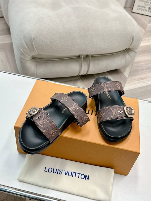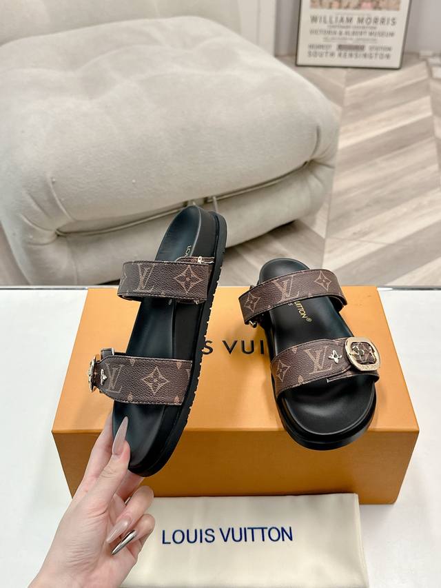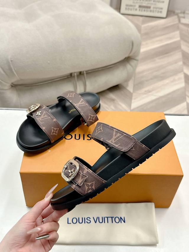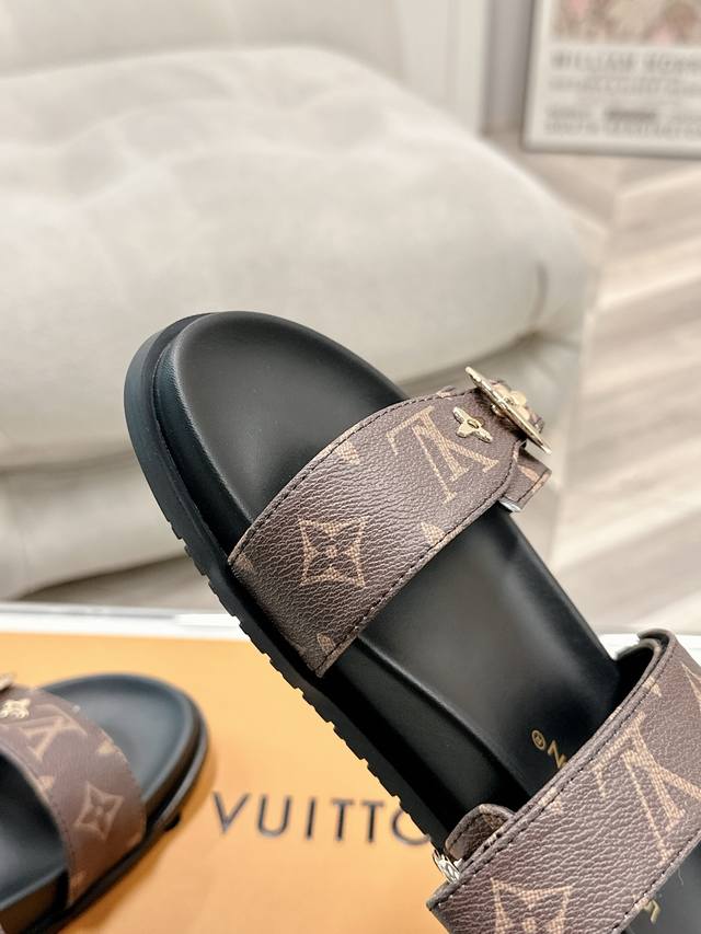 Louis Vuitton's new summer slippers are now available! 1:1 high-end custom-made, outshining all imitations. Original molded logo perforation decoration, both stylish and beautiful. Top-tier early spring new version! Extremely high-end! A must-have for bloggers both domestically and internationally, retro yet fashionable, and looks amazing on! Official website featured style