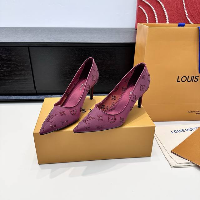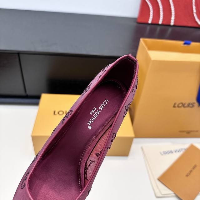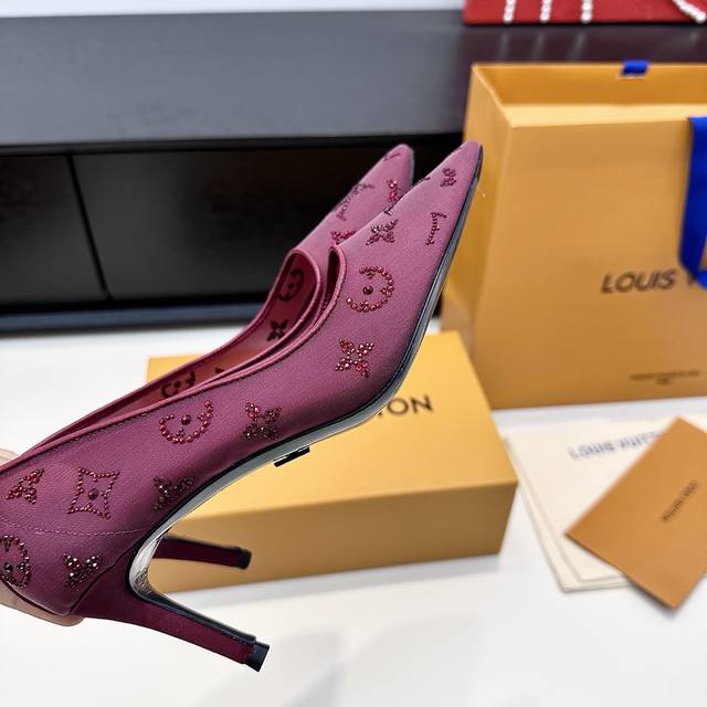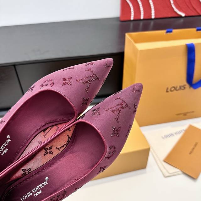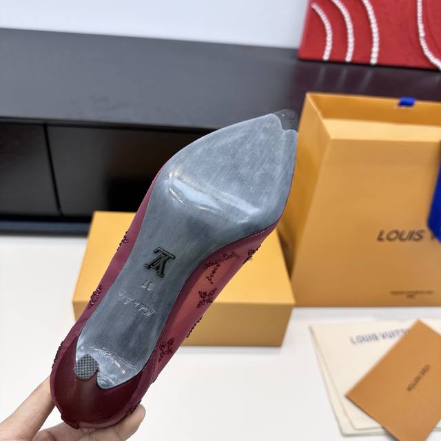 LV 2025 New Gala Mesh Rhinestone High Heels DDD Elegant genuine leather sole with Monogram composed of sparkling rhinestones DDD Three heel heights: flat, 7.5cm and 9.5cm DDD