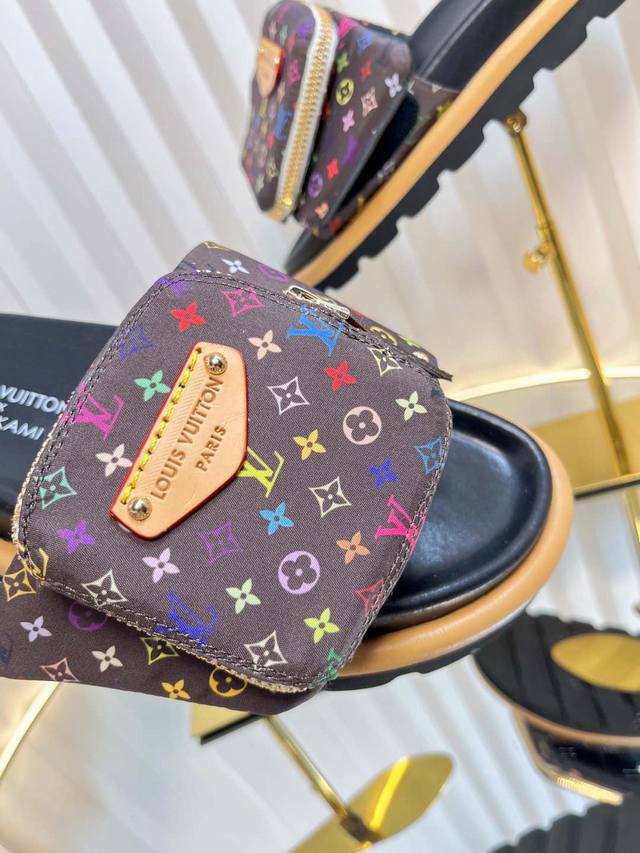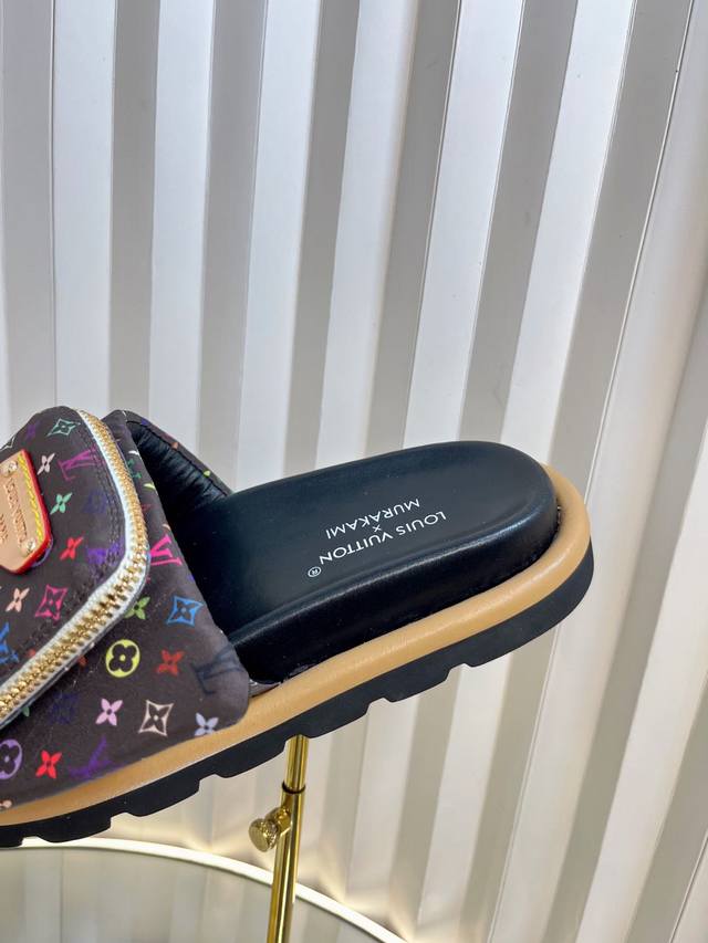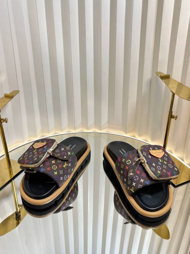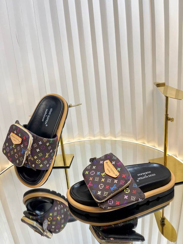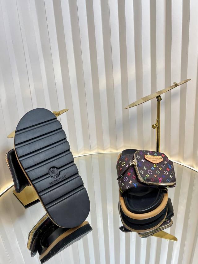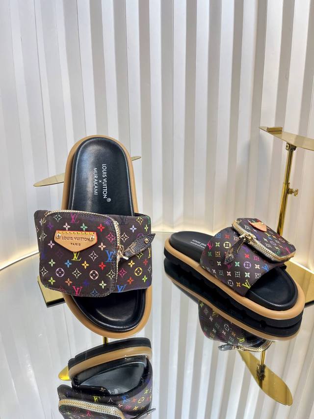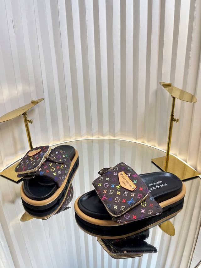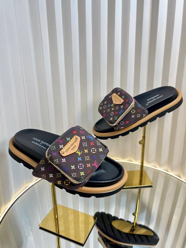 Lv 2025 popular embossed logo sandals Pool Pillow Comfort flat sandals Made of high-frequency embossing technology, the Monogram pattern is reproduced with soft padded uppers and adjustable Velcro Comfortable and resilient insoles add harmonious colors Original custom fabrics Soft sheepskin lining Original molded rubber foam outsole Size: 35-45 Women 40 Men 45 Custom-made
