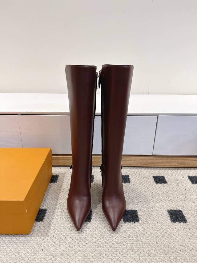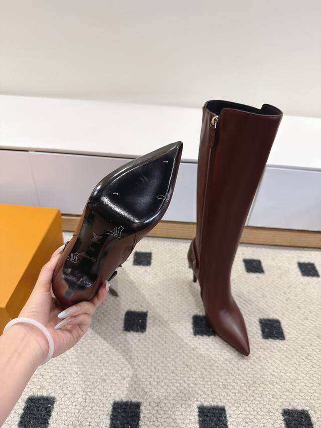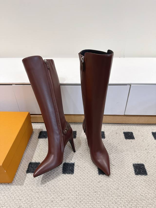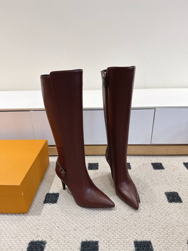 LV Autumn/Winter New Arrival DDD Top-quality monogram buckle pointed-toe high-heeled boots DDD Exquisite metal LV logo embellishments DDD Unique pointed-toe design, sleek and stylish DDD Perfectly elongates leg lines DDD Giving you confidence and ease with every step DDD Comfortable 8cm heel height, sexy walking DDD Original suede upper DDD Lambskin lining and insole DDD Italian imported genuine leather outsole DDD Sizes 35-41 [40 41 customizable] DDD