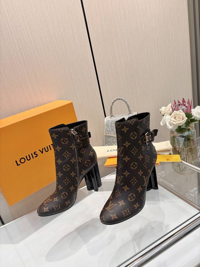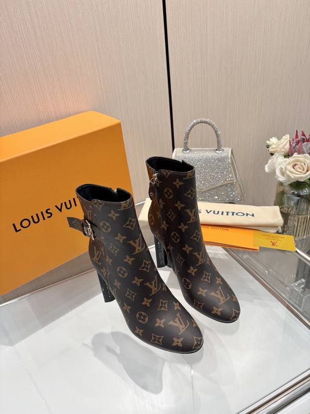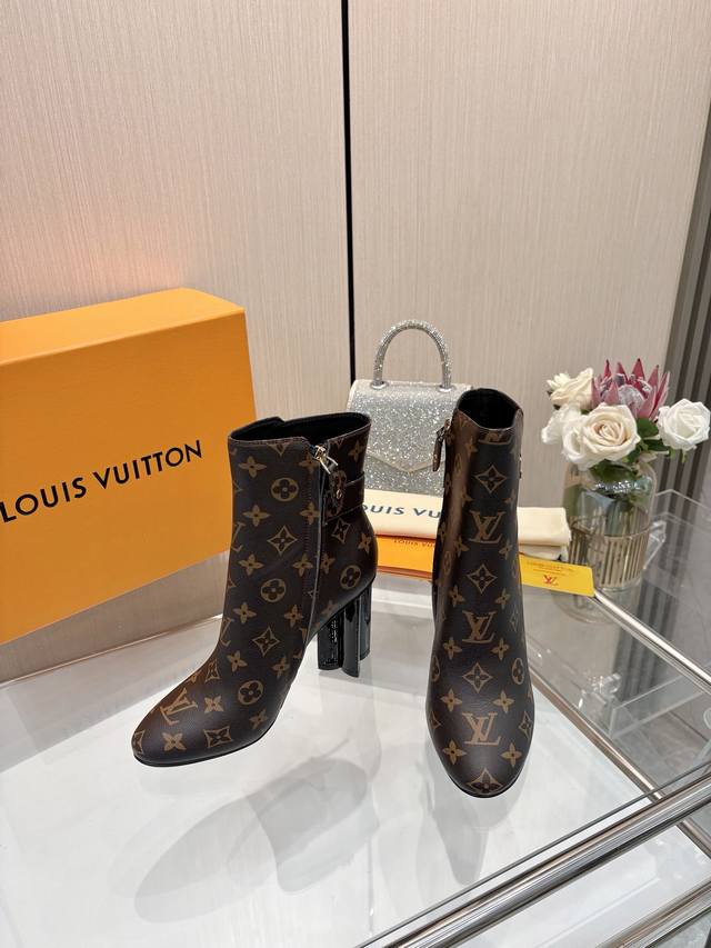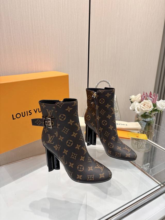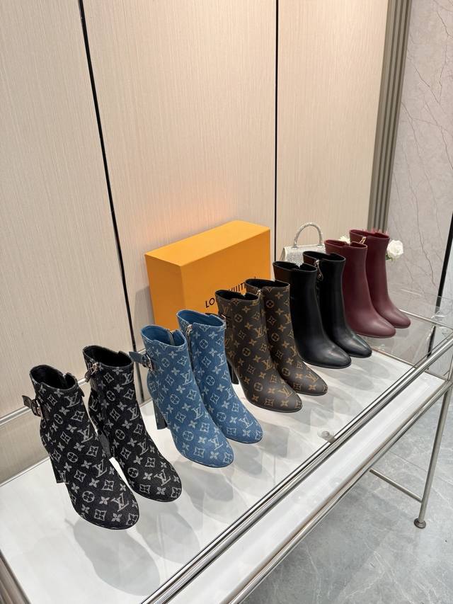 LV Autumn/Winter Runway Same Style 6-inch Ankle Boots Officially Available Now! Classic last outlines the elegant curve of the toe. Newly molded LV element buckles and exquisite details speak of high-end style. 9.5cm plum blossom heel supports effortless strides. Original molding process achieves 1:1 three-dimensional tailoring. Selected imported calfskin, monogrammed leather, and denim are available. Lined with skin-friendly sheepskin, Italian genuine leather outsole. Every step exudes the quality of luxury. Wear the runway brilliance on your feet. Make every everyday moment your own personal runway. Materials: Imported calfskin, monogrammed leather, and denim. Lining: High-quality soft sheepskin lining. Insole: Imported sheepskin lining. Outsole: Italian genuine leather. Heel: 9.5cm plum blossom heel with leather upper. Sizes: 35-40, 34, 40, 41. Custom orders are non-refundable and non-exchangeable.