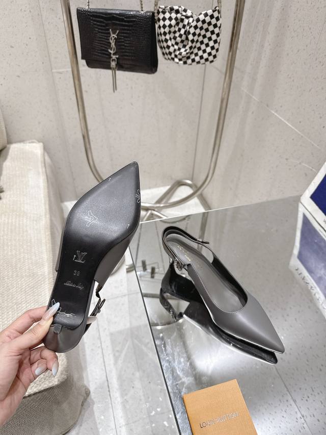 Lv Backstrap Sandals DDD Loui & Vuitto 2660 New Top-Tier Version DDD This Legacy slingback heel sandal continues the traditional design with smooth calfskin leather, highlighting the heritage theme of Louis Vuitton's Spring/Summer 2025 runway show. The soft pointed toe and kitten heel exude elegance. The Monogram canvas backstrap, featuring a retro trunk handle element, and subtle elastic inlays, allows for easy on and off. DDD Upper: Calfskin DDD Lining: Sheepskin lining + Sheepskin insole DDD Outsole: Italian genuine leather outsole DDD Heel height: 5.5cm DDD Sizes: 35-41 40.41 Made to order, no returns or exchanges DDD