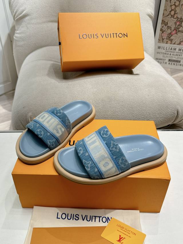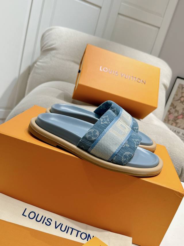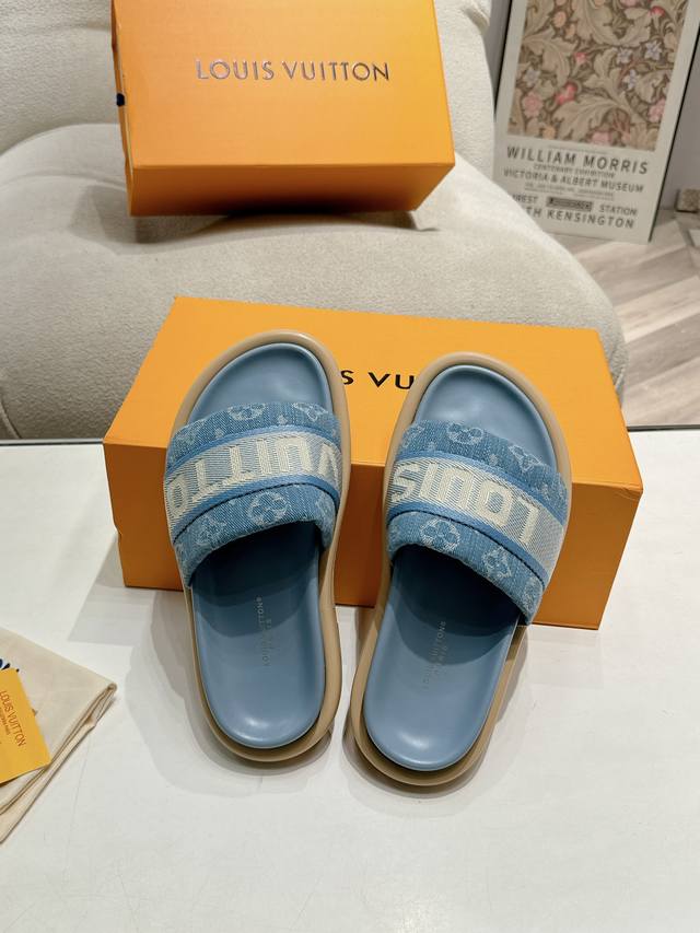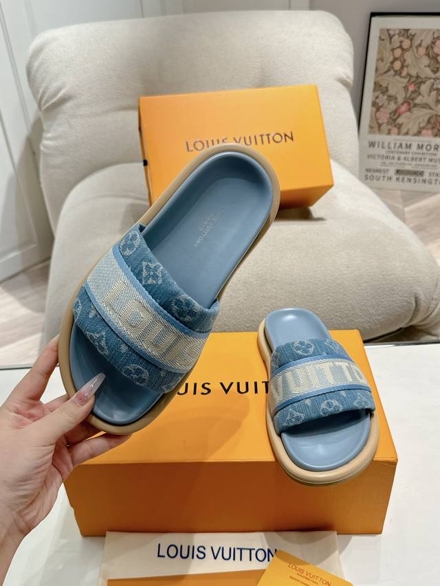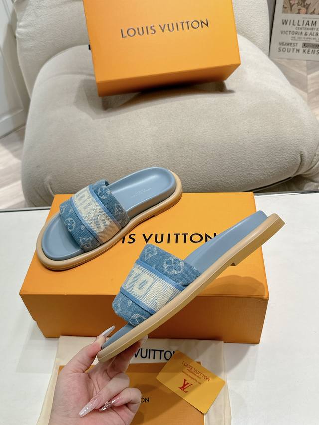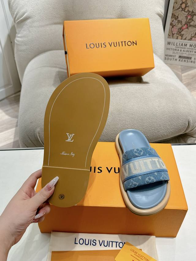 Lv Couple style, the latest style of slippers, a must-have item from the official store! High-end quality! A must-have for bloggers both domestically and internationally, retro yet fashionable, and looks amazing on! Official website featured style. Upper: High-quality custom printed fabric; Lining: Imported goatskin; Outsole: Original molded, non-slip, wear-resistant foam sole; Sizes: Women's 35-41, Men's 41-45.