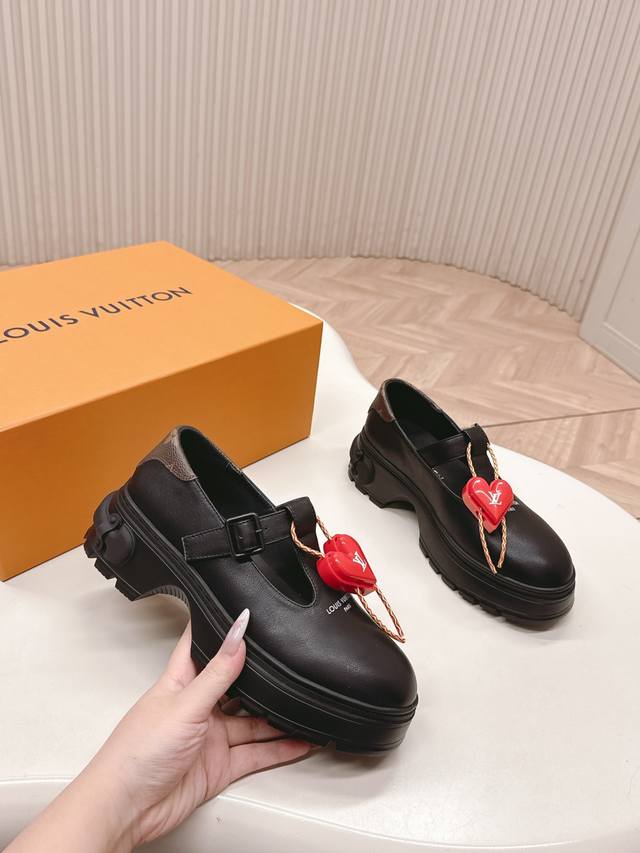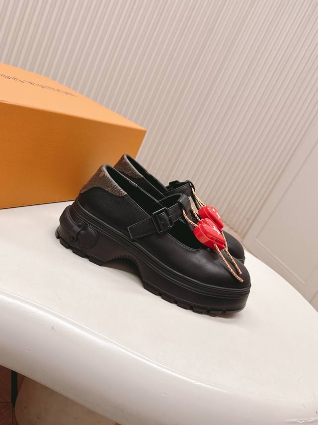 Lv (Donkey Brand) 25Ss New Autumn/Winter Single Shoes, Leather Shoes, Versatile Slim Fit, 3D and Full Shape, Stylish and Comfortable to Wear. Exclusive Mold with Adorned Buckle, Very Retro and Cute Style, Full of Aura, Original Monogram Design, Classic Style, Perfect Details, Cool and Trendy. Upper: Cowhide Leather, Lining, Insole. Size: 35-40