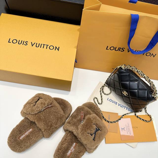 / Lv Donkey Brand 25th New Donkey Coin Purse Wool Slippers True Size: 35-41 DDD
