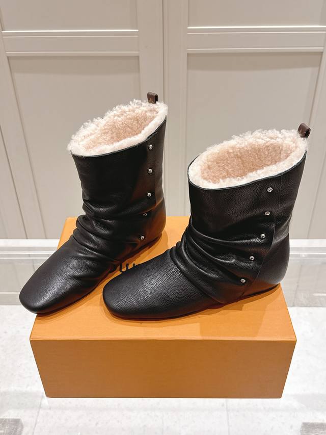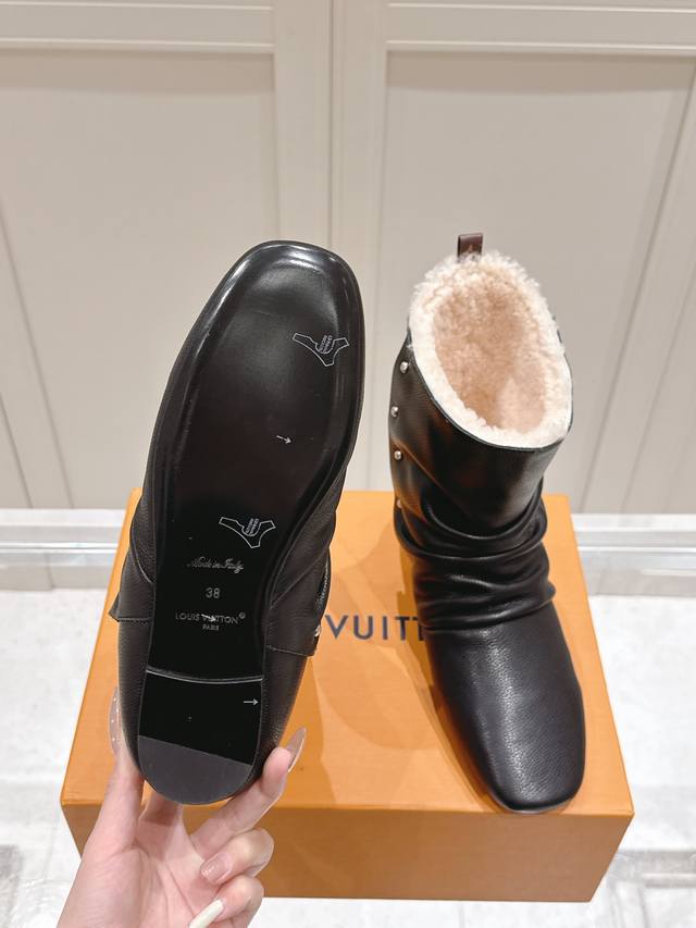 LV Genuine Leather Snow Boots: Winter Luxury and Warmth, Elegant Debut DDD Wrapped in premium lychee-textured cowhide DDD A tactile luster of quality DDD 3cm invisible height increase subtly outlines long legs DDD Italian genuine leather outsole carries elegant steps DDD Lined with soft Australian wool DDD A warm and protective feeling like walking on clouds DDD From jeans to wool skirts DDD Easily complements all your winter style needs DDD This winter DDD Let your feet sink into the gentle comfort of luxury DDD Even strolling in the snow, you'll be the center of attention DDD #LVSnowBoots #WinterOutfit #HighEndOutfit DDD Material: Imported cowhide DDD Lining: Wool lining DDD Outsole: Italian genuine leather DDD Sizes: 35-41 DDD Packaging: Brand packaging DDD