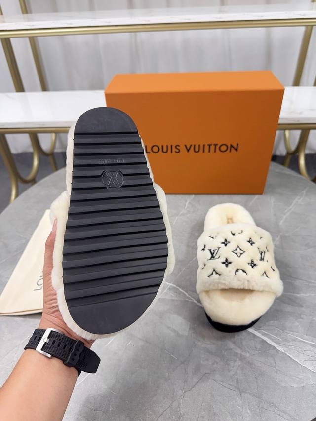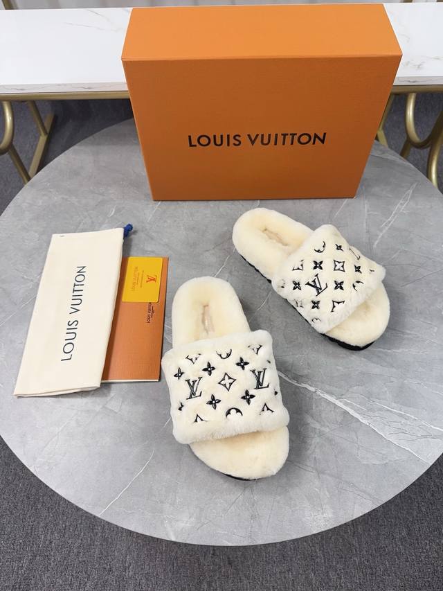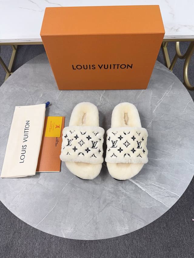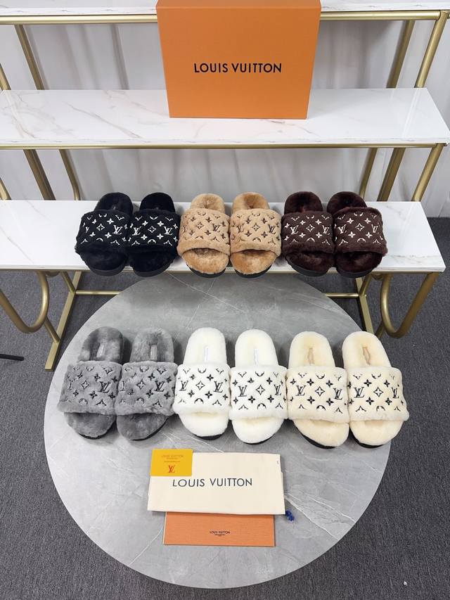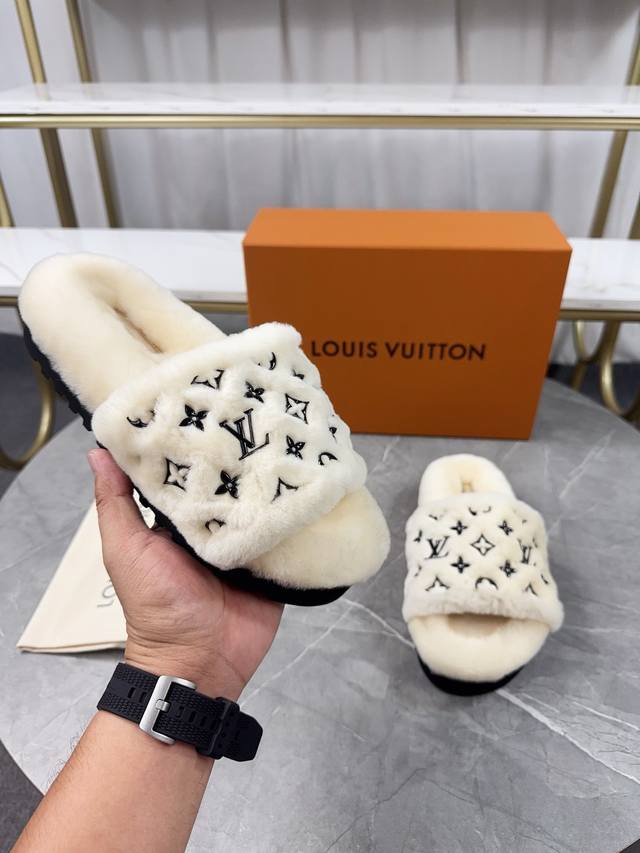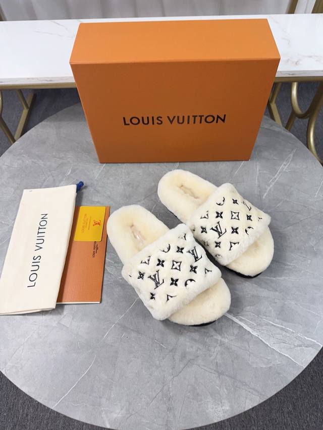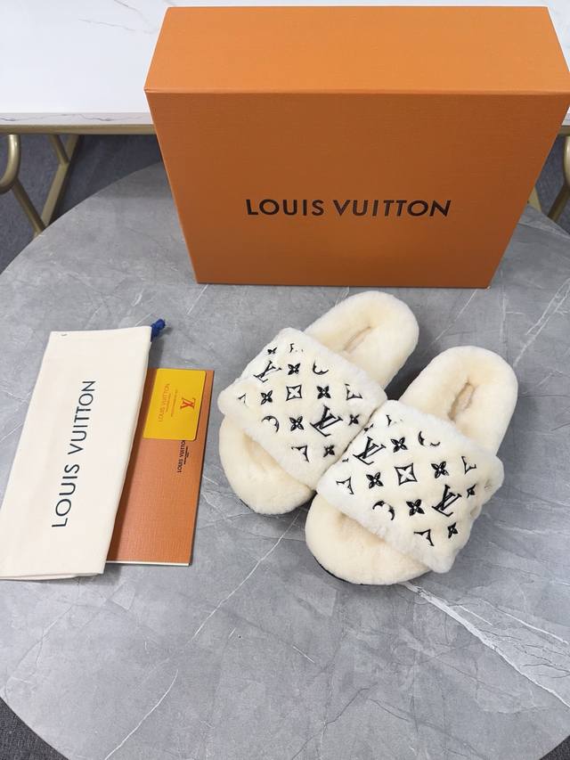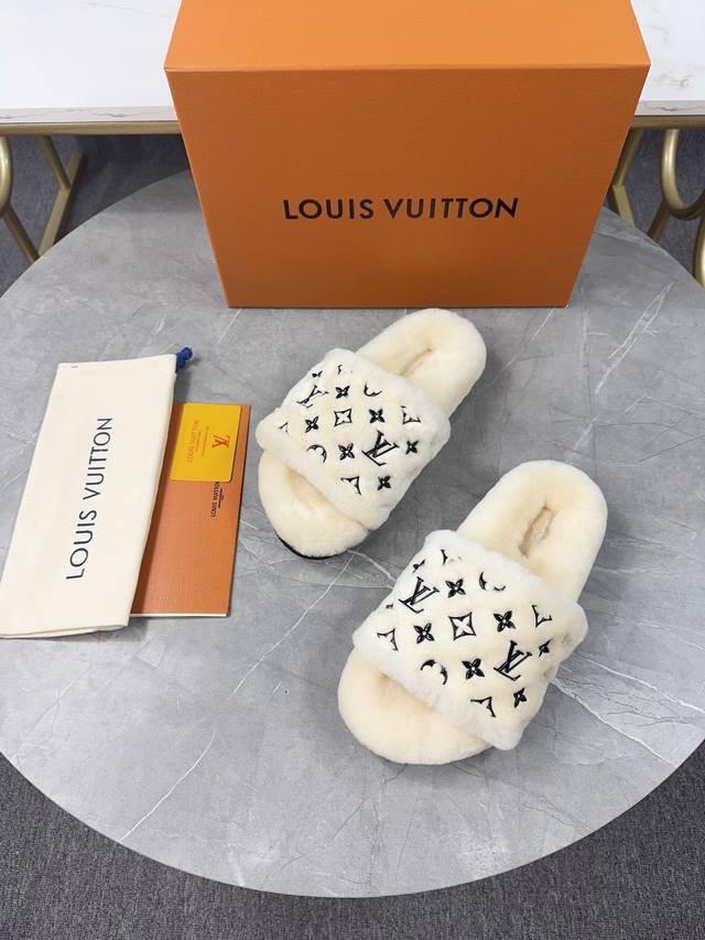 LV Louis Vuitton 2025 New Wool Slippers - Soft and Fine Wool, Top Quality Pure Fur Straight Hair! Super warm, wearing them feels like walking on clouds. The classic LV monogram embellishments are exquisite and sophisticated, instantly elevating the value of these slippers! The sole is an original molded EVA foam non-slip outsole, very comfortable and non-slip, and the sole has a certain thickness for excellent comfort! Upper: Original Australian Wool Lining: Australian Wool Insole: Australian Wool Outsole: Original Foam Sole Height: 3.5cm Packaging: Original Drawer Box Sizes: 35-40, 34, 40, 41 (Custom orders are non-refundable) Color: Official website synchronized color batch:
