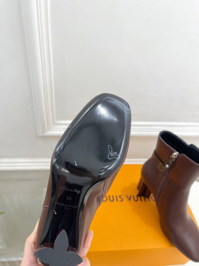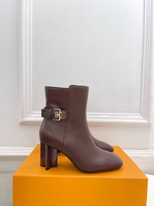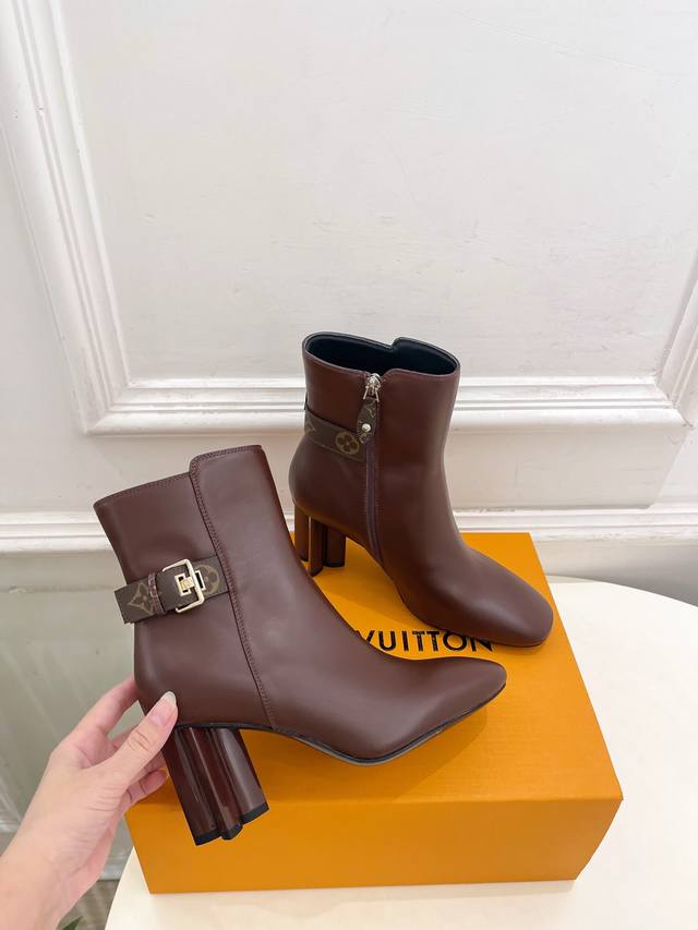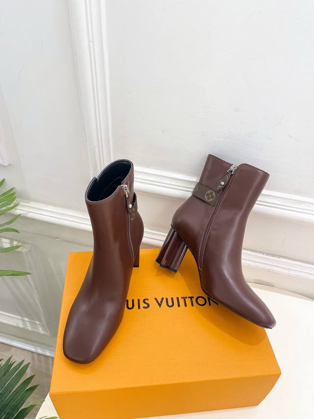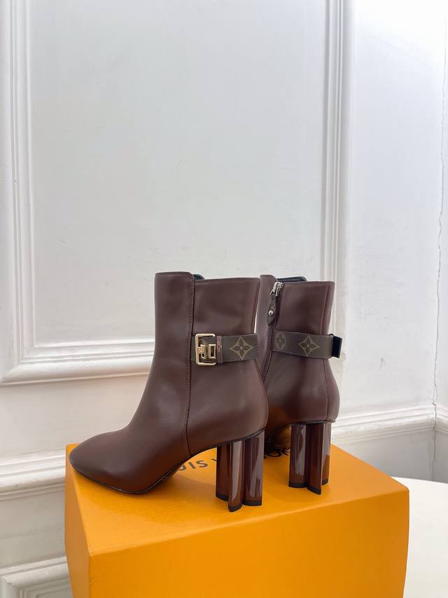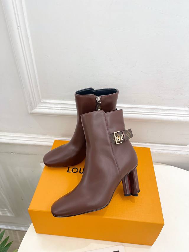 Lv Louis Vuitton 25 DDD 2025 Autumn/Winter New Top-Tier Version DDD The latest classic monogram buckle, plum blossom heel, square toe ankle boots, a must-have item! High-end feel! A must-have for bloggers both domestically and internationally, retro yet fashionable, looks amazing on! Official website featured style
