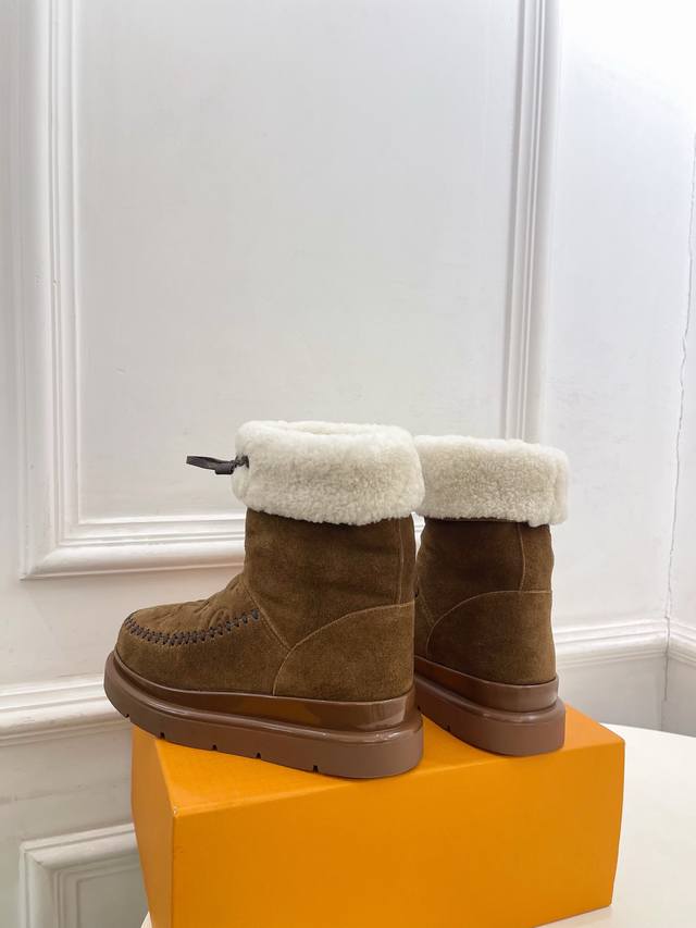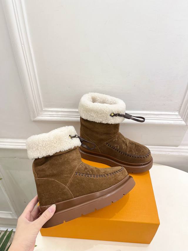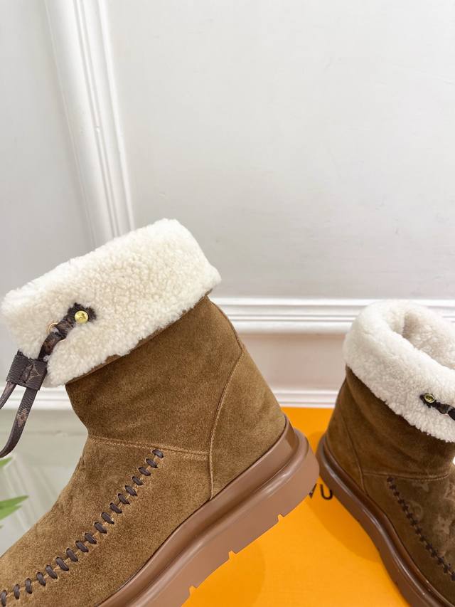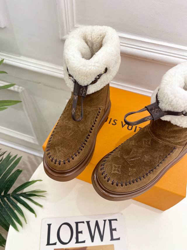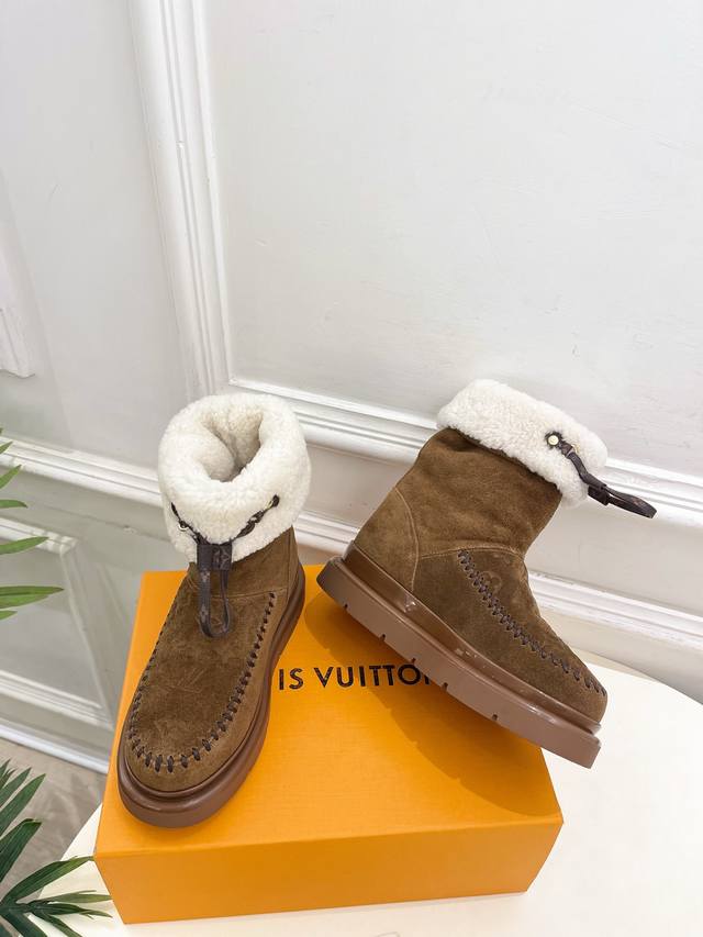 Lv Louis Vuitton 25 DDD 2025 Autumn/Winter New Top-Tier Version DDD The latest Lv Ski series Cortina ankle boots, furry snow boots, are now available! High-quality, top-tier! A must-have for bloggers both domestically and internationally, retro yet stylish, and looks amazing on! Official website featured style