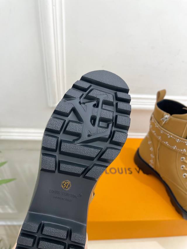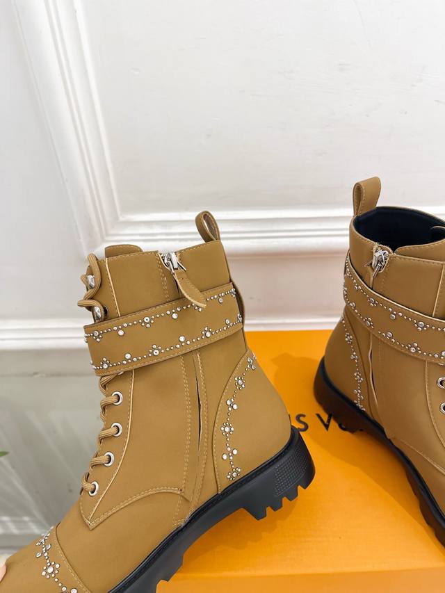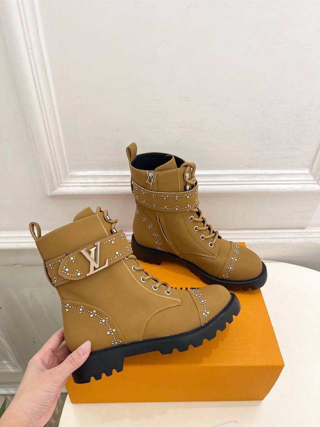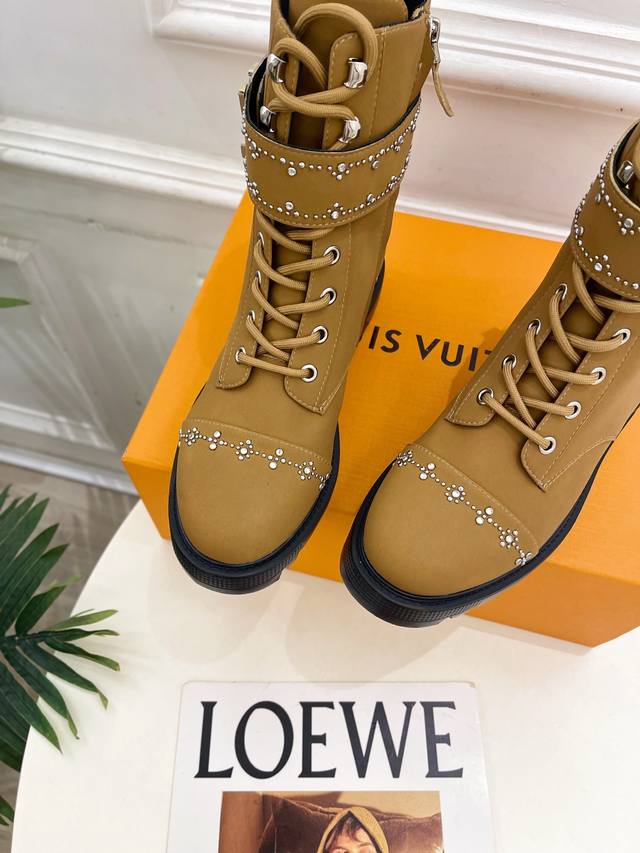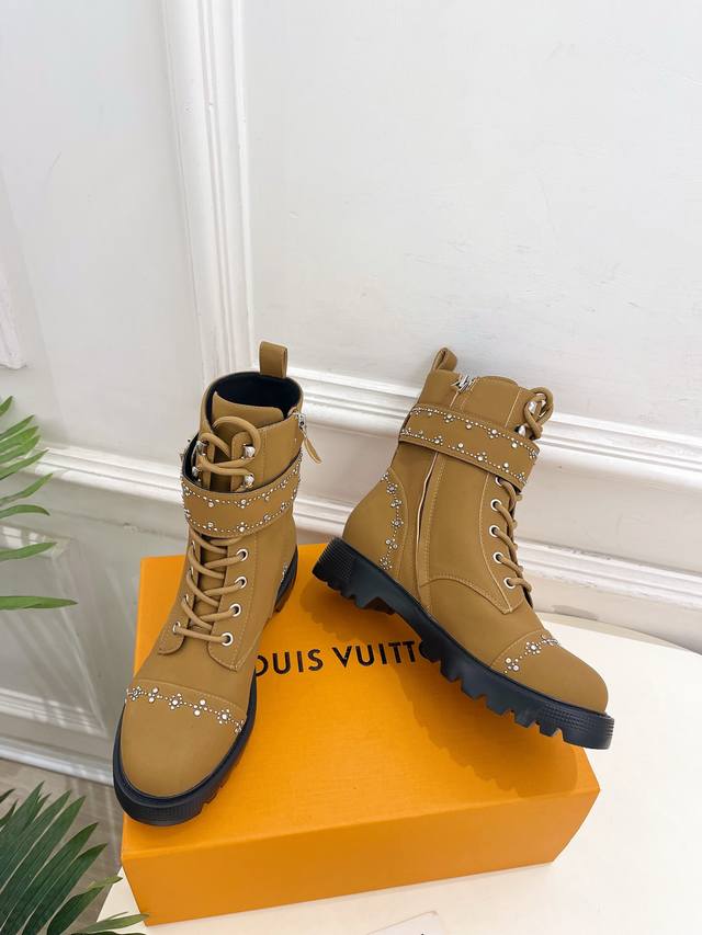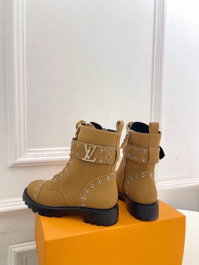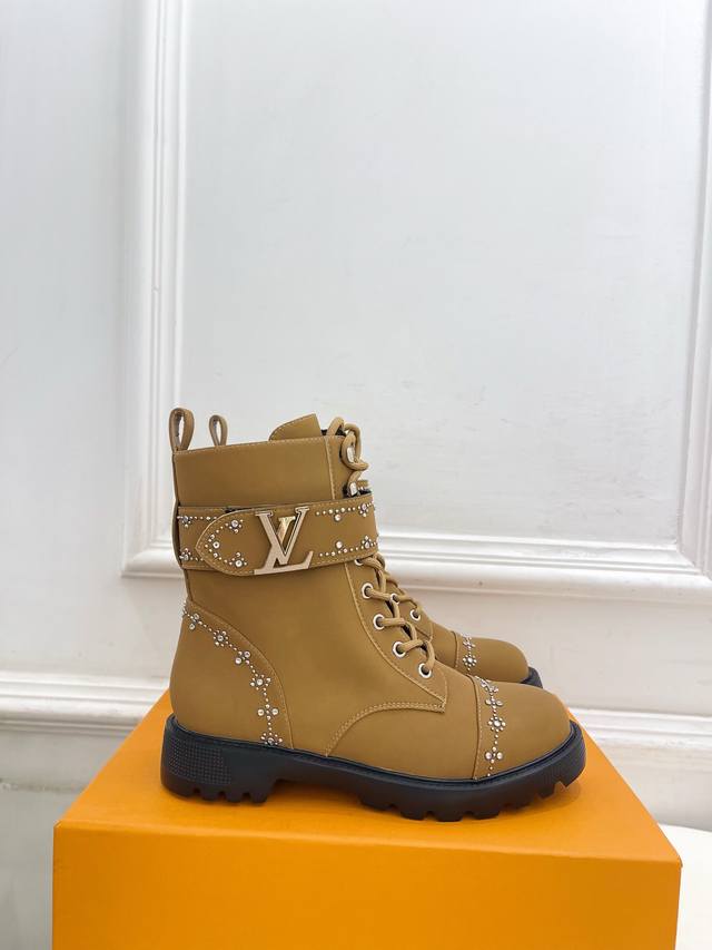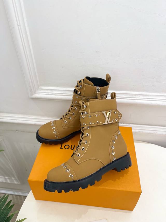 Lv Louis Vuitton 25 DDD 2025 Autumn/Winter New Top-Tier Version DDD The latest rhinestone studded Lv leather buckle Martin boots, a top-quality item, are now available! High-end feel! A must-have for bloggers both domestically and internationally, retro yet stylish, and looks amazing on! Official website featured style