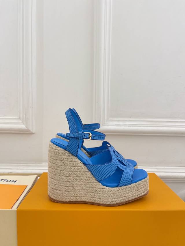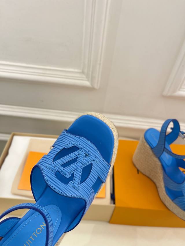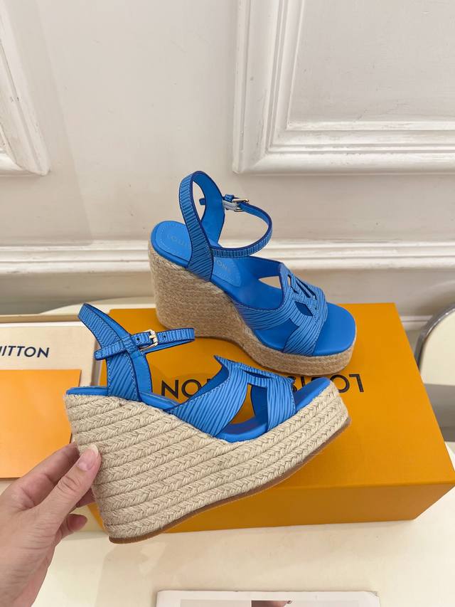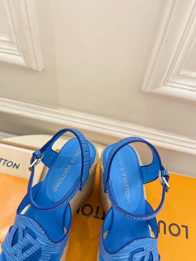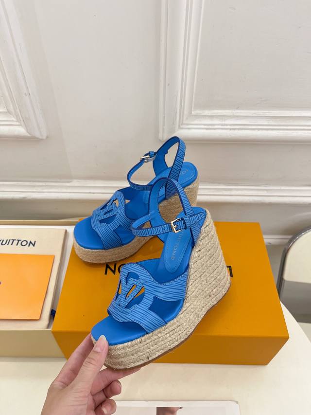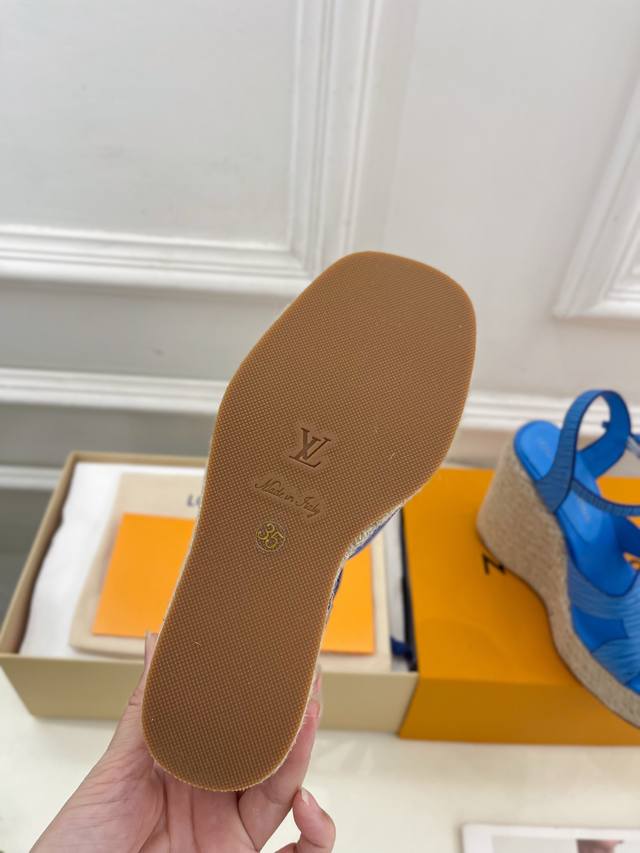 . The counter's main feature is the latest Lv Isola hollow hemp rope wedge sandals, a solid new arrival. Bs purchasing level! A luxurious feel! A hit among bloggers at home and abroad, this retro and stylish sandal looks stunning on the feet! Official website featured model