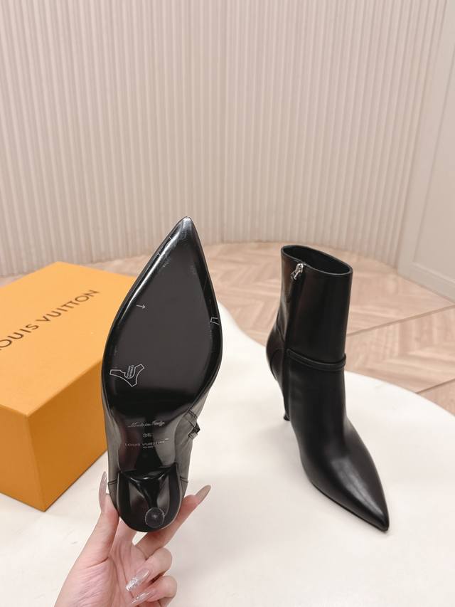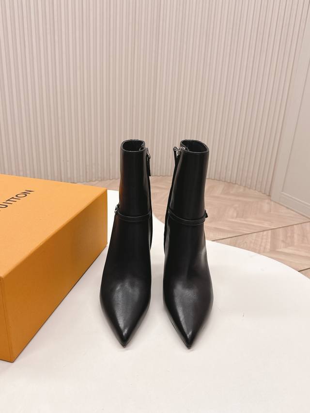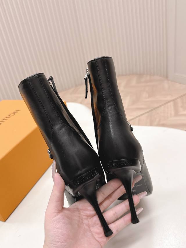 LV Louis Vuitton 25Ss New Autumn/Winter High-Heeled Martin Boots, Short Boots, Versatile and Slim Fit. The design is three-dimensional and full, exuding elegance and comfort. Very retro and stylish, featuring the original monogram design for a classic look with perfect details. Cool and trendy. Upper: Cowhide Leather; Lining: Cowhide Leather; Insole: Genuine Leather; Outsole: Size: 35-39 40