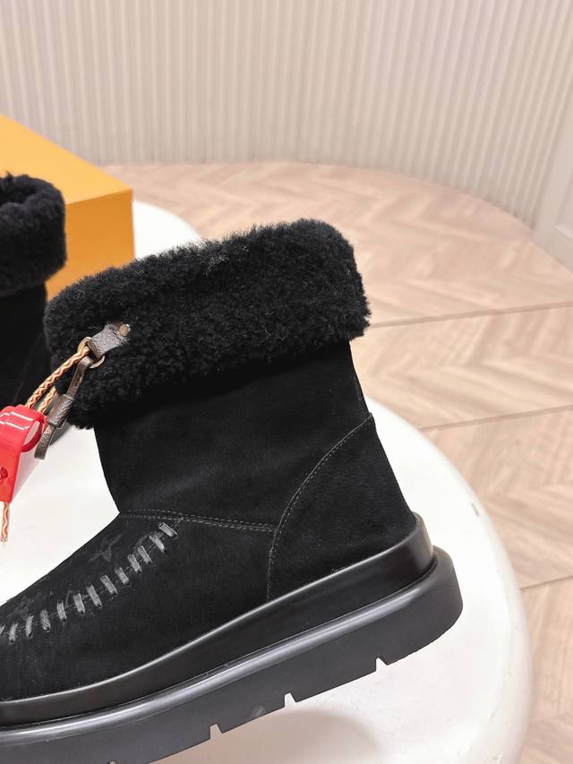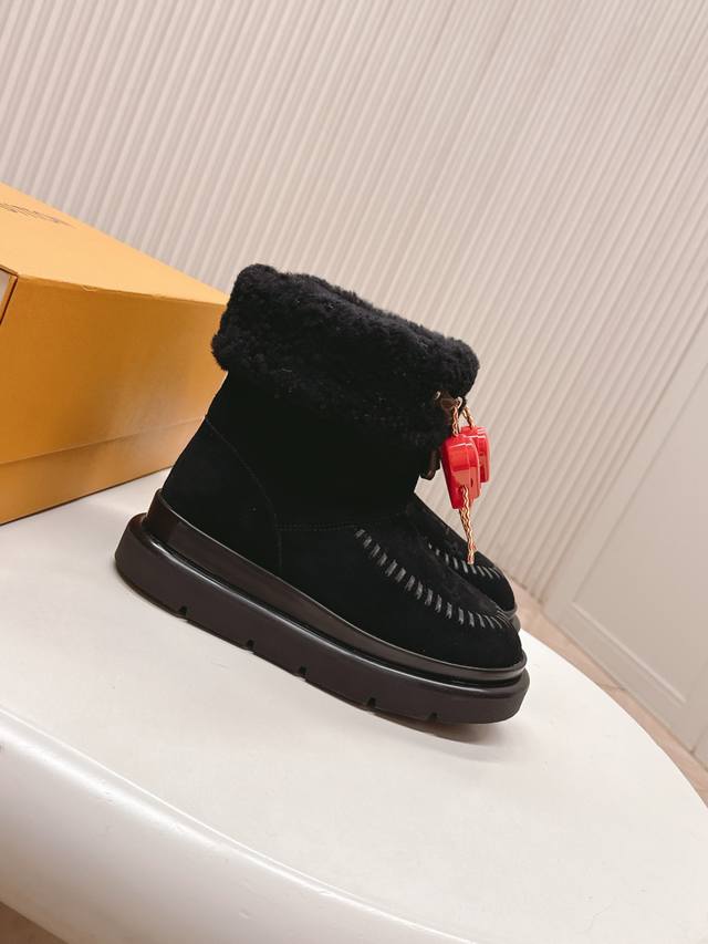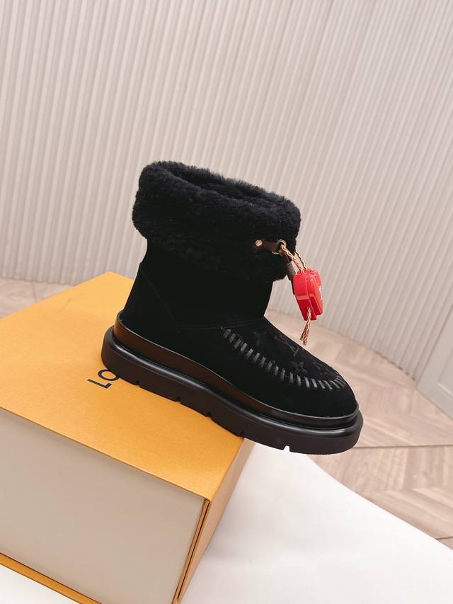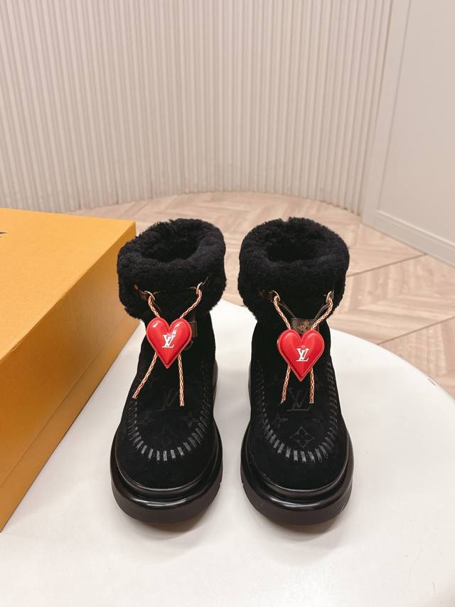 Lv Louis Vuitton Autumn/Winter Snow Boots. Thick sole with custom heart-shaped buckle, comfortable, cute, stylish, elegant, and versatile. Soft and comfortable wool, bringing warmth to autumn and winter. Comfortable for walking from morning to night. Easily adaptable to all seasons. Wool, original outsole! Sizes 35-40.