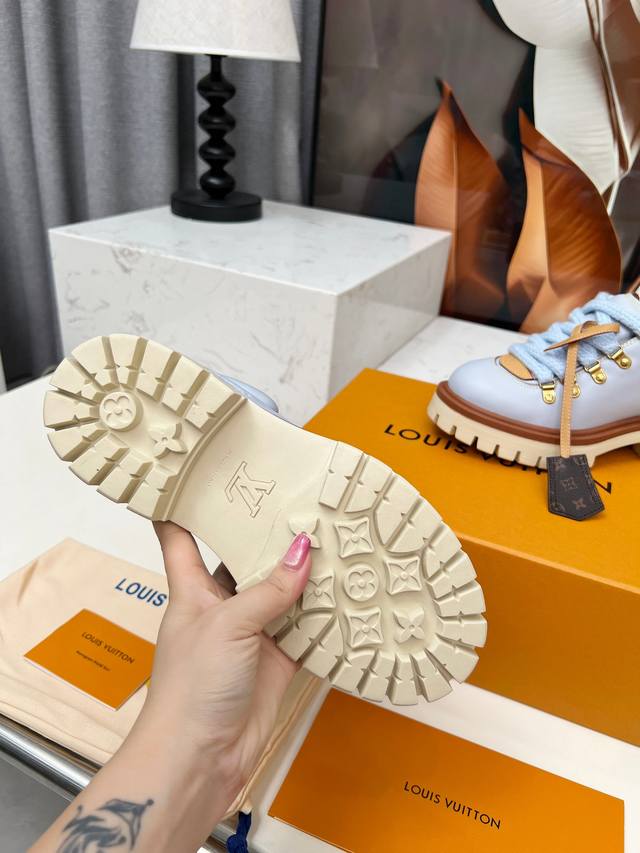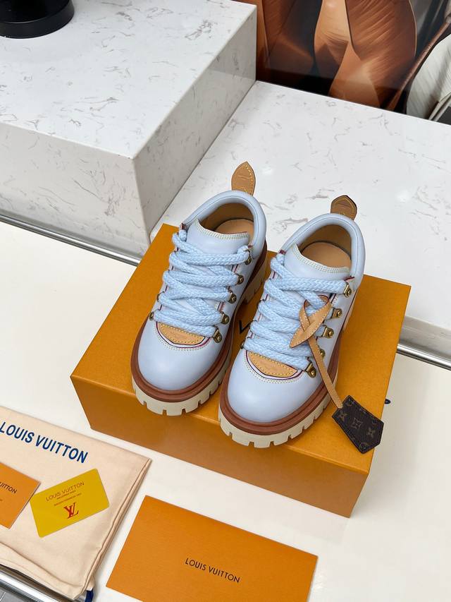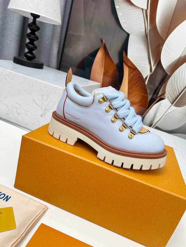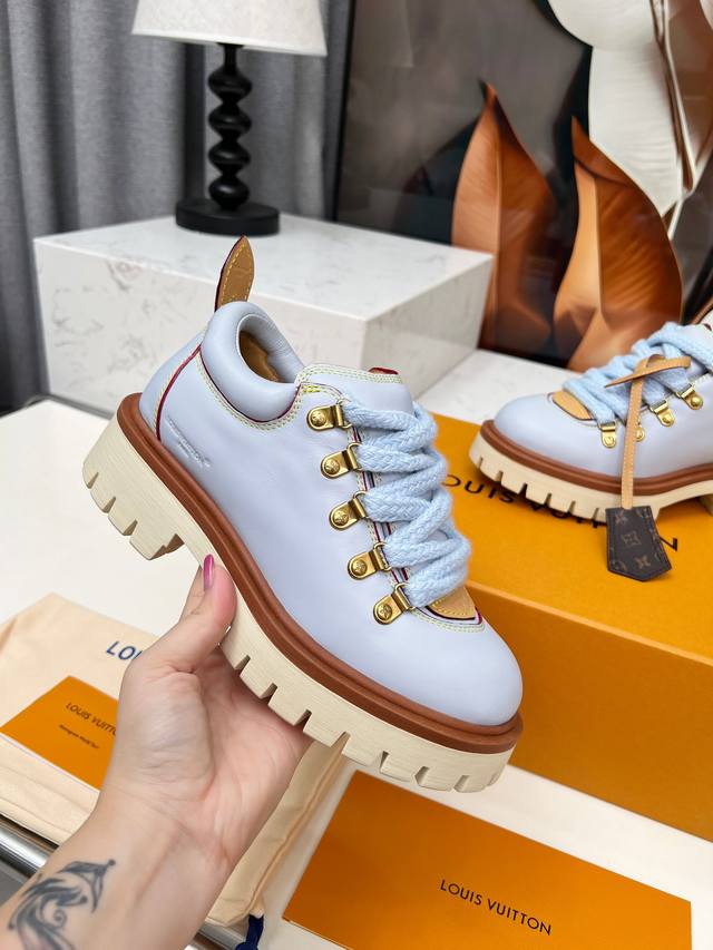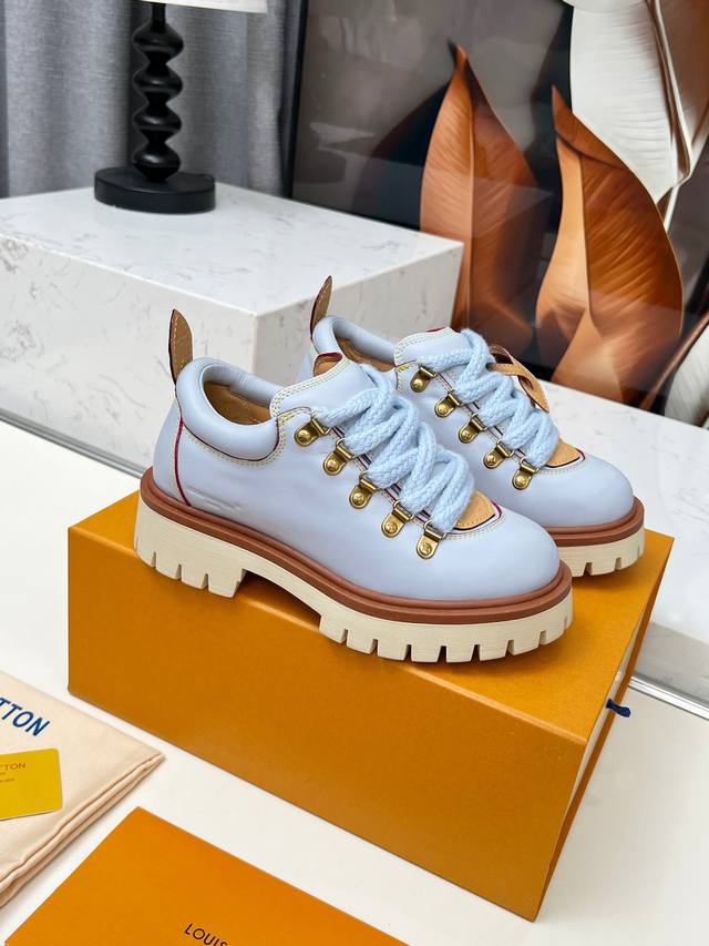 Lv Louis Vuitton Derby Shoes 2025 Autumn/Winter New Arrival! 1:1 replica, retro and stylish, cool hiking shoes are now available. Materials: Imported top-grain cowhide; Lining: Imported lambskin; Outsole: Original molded Tr non-slip outsole; Height: 3.5cm; Sizes: Unisex 35-45.