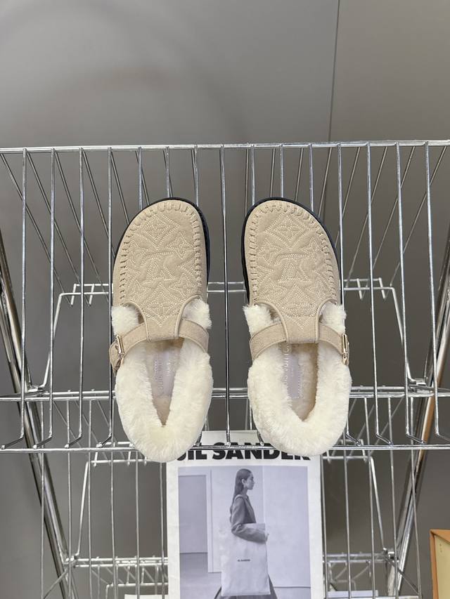Lv Louis Vuitton's latest autumn and winter pure wool slippers, thick soles, height-enhancing outerwear, half-covered wool slippers with a buckle at the heel. A must-have for petite women. They're refined, sophisticated, and effortlessly casual yet sophisticated. The furry feel is so adorable! The upper, lining, and footbed are made of genuine wool for warmth and comfort, while also boasting a full-bodied feel. Sizes: 35-41