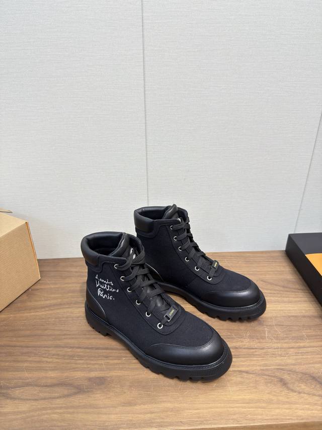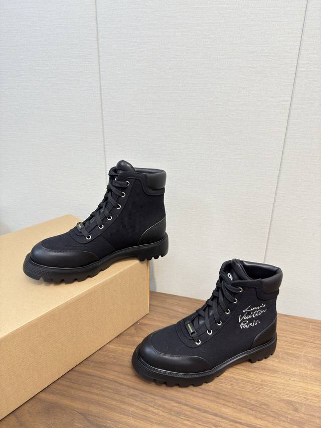 LV New Chelsea Boots, Runway Lace-up Dr. Martens, Leather Upper, Original Sole,