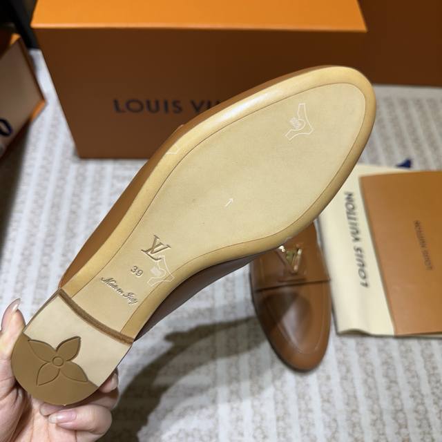 LV Old Money Style Mare Flex Loafers reinterpret the LV Mare loafer with a lightweight and flexible sole. The cowhide upper is adorned with partially leather-covered LV logo decorations, echoing the lock design of the Capucines handbag. The easy-on and off-the-shoulder design adds a casual and trendy touch. Material: Original color-matched smooth cowhide; Lining: Imported mixed sheepskin; Outsole: Italian genuine leather; Leather-covered logo buckle. Sizes: 36-42, 40-42. Custom-made single shoes/slippers available.