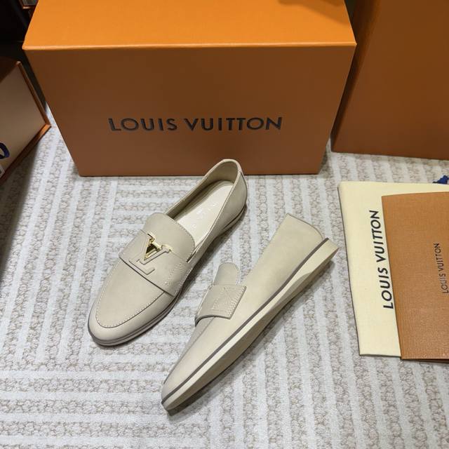 Lv Old Money Style Mare Flex Loafers reinterpret the LV Mare loafer with a lightweight and flexible sole. The suede upper is adorned with partially leather-covered LV logo accents, echoing the Capucines handbag's clasp design. The easy-on, slip-on silhouette adds a casual and trendy touch. Material: Original color-matched suede leather; Lining: Imported mixed sheepskin; TPU outsole; Leather-covered logo buckle; Sizes: 36-42, 40-42; Custom-made; Shoes/Slippers.