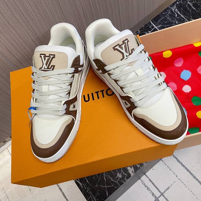 Lv Trainer~~Newly Upgraded Version~~Classic Return! Ddd Couple Style, Skateboard Shoes, Basketball Shoes, Sports Shoes Ddd Lv New Sports Series; Retro Style; Incorporating Many Classic Elements from the Family; Super Cool~~ Ddd Full Leather Upper with Lv Badge Fabric, Breathable Mesh Lining, Original Outsole, Original Last, More Details Compared to the Mass-Produced Product, Perfect High-End~~ Ddd Overseas Purchase Luxury Airline Gift Box Packaging Ddd 35 40 Women's Size 39 45 Men's Size DDD
