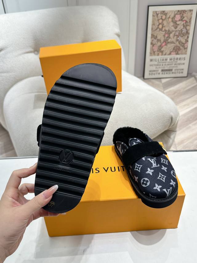 Lv's latest catwalk-style wool slippers are a hot launch. They are very fashionable and have a unique design. The partial brand logo is embellished, which is low-key and highlights the brand's charm. This style is suitable for many people. It is comfortable to wear and slims the feet. The color matching is also very elegant. Upper: imported semi-wool material + internal crystal velvet. Lining: original special material. Outsole: Tpu. Size: 35-42. Size 40.41 is not returnable or exchangeable.