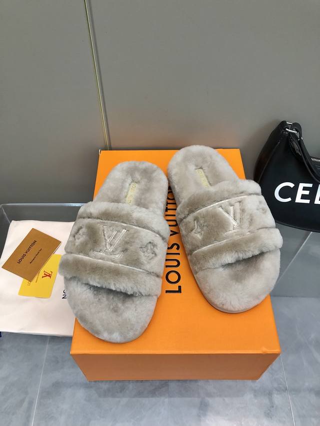 Lv's new fall/winter plush slippers are super cute! This season, I've fallen in love with them all over again! So many beautiful shoes this season, and these slippers are so cute! The plush wool is made from imported A-grade lambswool from Europe. We've made it identical to the original, using only premium lambswool, without any artificial wool! The outsole is made from the same TPU material as the original, making it wear-resistant and non-slip! Sizes 35-40 and 41 are custom-made and non-refundable.
