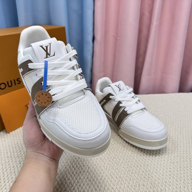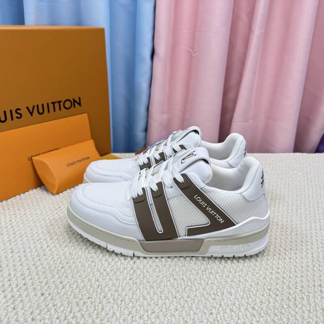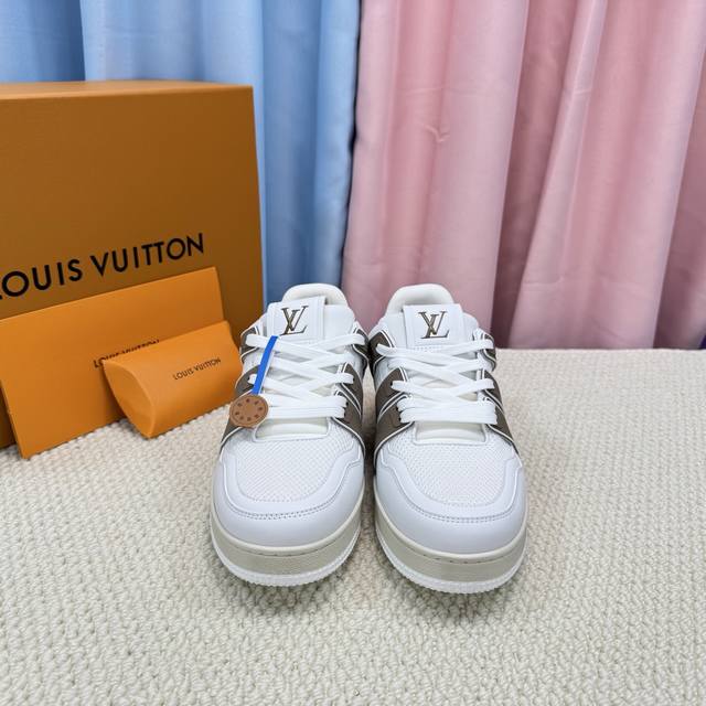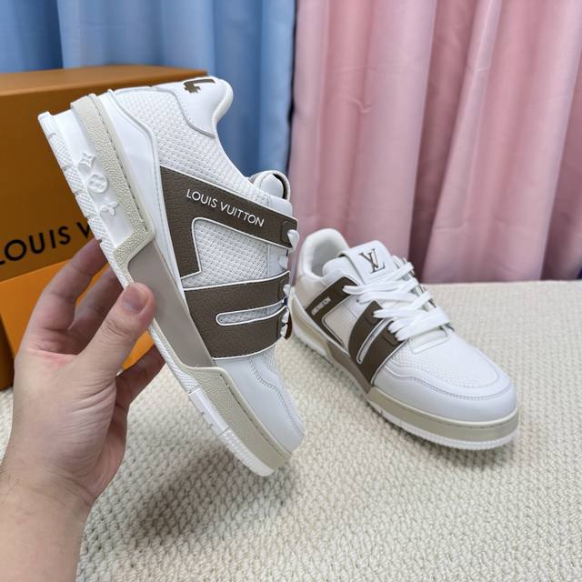 Lv-Trainer Louis Vuitton PK Market All Versions Couple Style Runway New Basketball Sneakers, 1:1 Original Quality Replica!! Extremely comfortable to wear, exquisite workmanship. The upper is made of imported Italian calfskin, decorated with the brand logo and signature on the side. It features an imported breathable mesh lining for super comfortable wear. Original factory-supplied two-tone TPU molded outsole. Goodyear welt stitching and overlock edging. Size: Women's 35-40, Men's 39-45 (Standard size Men's 38, 46, 47). Custom orders are non-refundable and non-exchangeable.