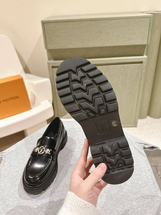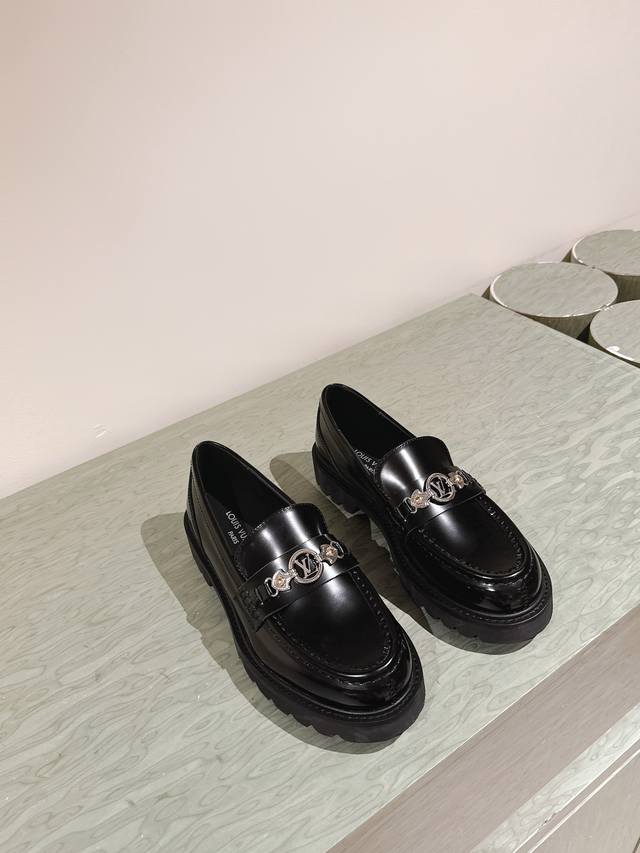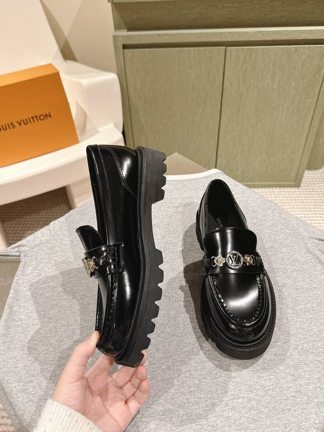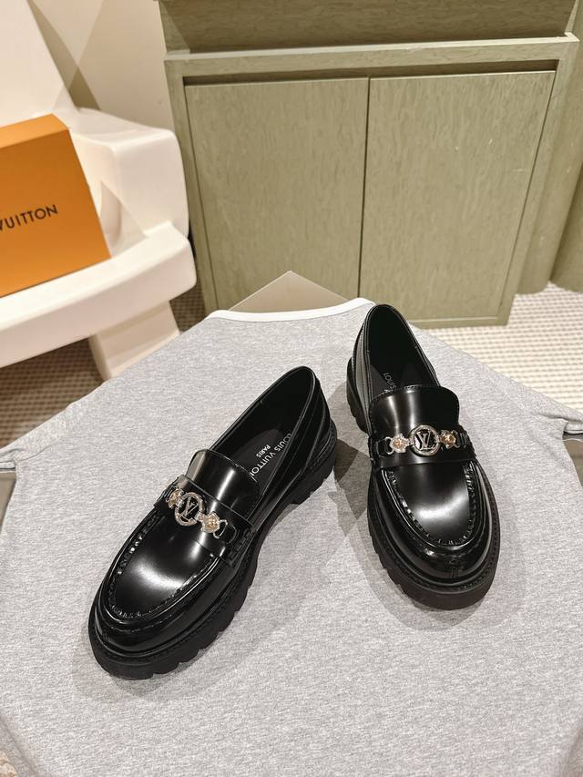 Lv Louis Vuitton 25 S Early Spring Runway Show Latest Open-Edge Beaded Thick-Soled Loafers! High-Quality Import! Slip-on, Versatile, Stylish British Style! Thick-soled, Height-Increasing, Couple's Outfit. A versatile New Year's style, super comfortable to wear!