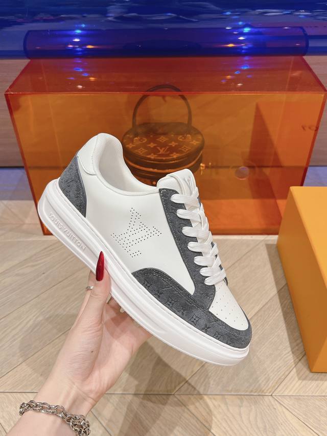 . Color-blocked leather craftsmanship and 3D logo embossing on the heel add a three-dimensional effect. Litchi-grained cowhide and a PU foam outsole! Super lightweight! No tiring feet.