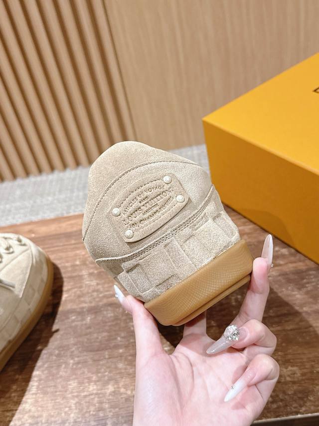 Men's + This collaborative Louis Vuitton "Fat Martens" loafers feature a suede cowhide leather base with Nigo's reinterpretation of the Louis Vuitton Damier pattern, subtly echoing the Chinese tradition of removing shoes indoors. The "small feet" aesthetic is integrated with Chinese street style. The palm-print rubber outsole subtly incorporates the Louis Vuitton logo and Monogram flowers, showcasing the brand's heritage within a comfortable loafer design. Pre-orders add a unique touch, blending tradition and trend. Size: 35-45