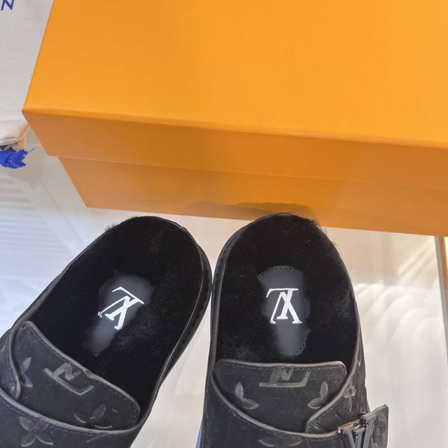 New Arrival from Official Store: Winterbreak Comfer Flat Slippers (DDD). Features a suede upper with LV monogram and Monogram floral embellishments, adorned with classic LV hardware including a leather buckle. Blended with a wool lining, suitable for both indoor and outdoor wear. Made of pure wool with a high-density foam platform for lightweight comfort. The thick sole provides a good height boost. Premium Size: 35-45 (34.41 is non-refundable/exchangeable).