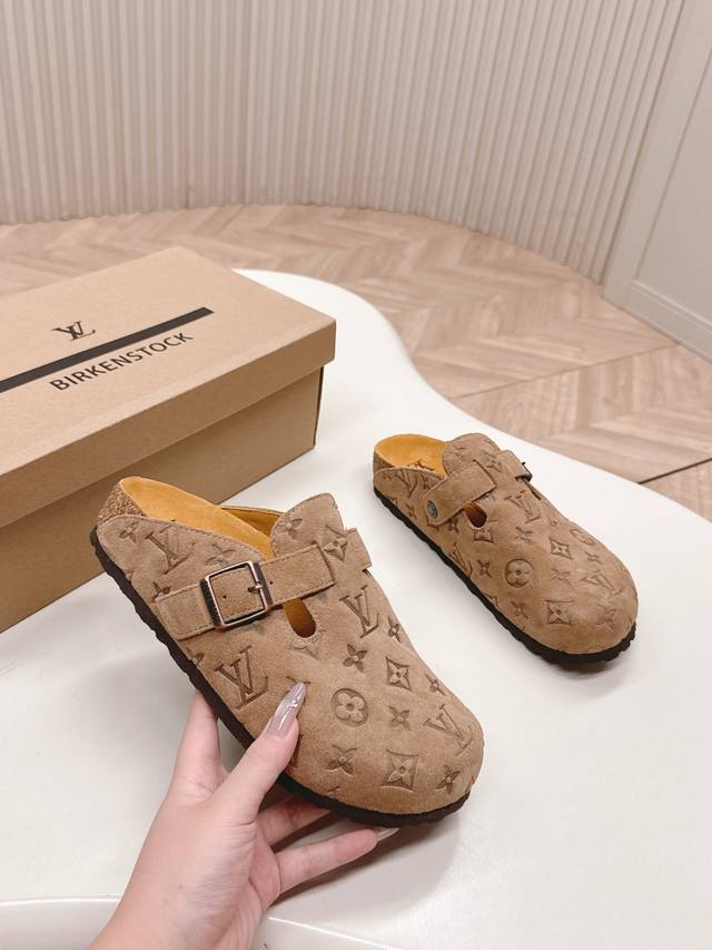 Lv Cosy Comfort flat sandals for a relaxed everyday look. Monogram leather and suede with adjustable buckle laces, a resilient insole, and a lightweight outsole create a classic design. Contrast stitching