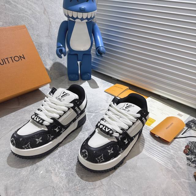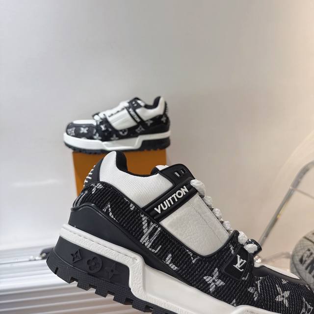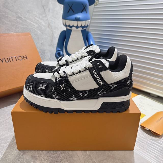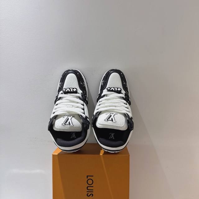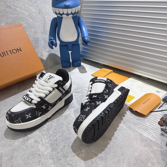 New color of the Lv Trainer (Little Fat Ding) - This version is currently the highest quality replica of the original, with all details and packaging identical to the original. The latest upgraded version of the Lv Trainer (Little Fat Ding) is identical to the original, exclusively molded, and top-tier in the market. Comparison is welcome! The outsole features large star-shaped particles, unlike the thinner small stars found in the market. The buttons are also top-quality, taking a month to mold! Each button is smooth and not rough, with a crystal-clear texture! The shoe waist features an elastic band for better ankle support and increased comfort, differentiating it from market products. The midsole has a unique interplay of solid and void printing to avoid being easily mistaken for a fake! Sizes: Women's 35-40, Men's 39-45