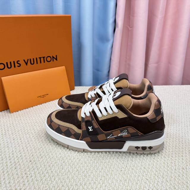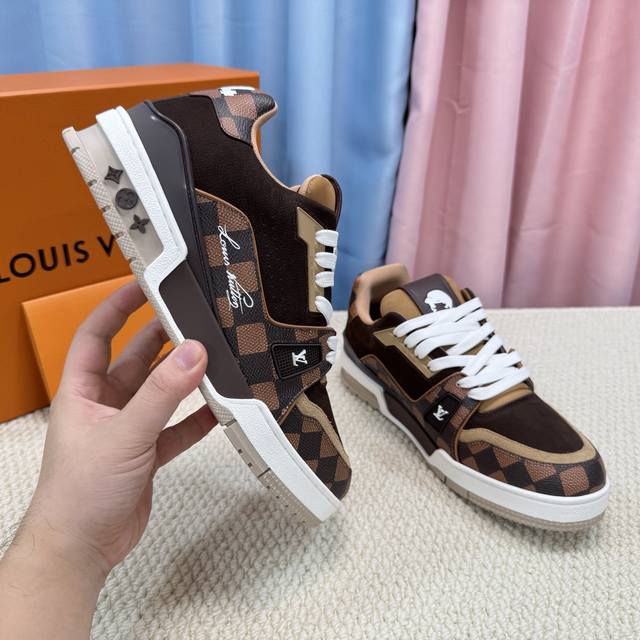 New couple shoes, new Louis Vuitton, PK all versions on the market DDD Runway new basketball sneakers, quality for personal purchase DDD Original 1:1 replica!! Very comfortable to wear, exquisite workmanship DDD The upper is made of Italian imported calfskin, with the brand logo and signature on the side, and imported breathable mesh lining for super comfortable feel. Original factory special supply original two-tone TPU molded outsole. Goodyear welt stitching and overlock edging DDD Size: Men's 39-44, standard size 45 46 4730, custom orders are non-refundable DDD