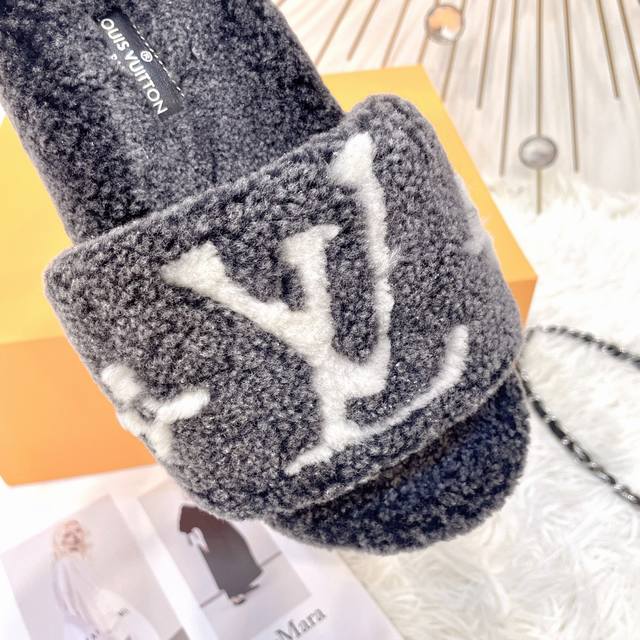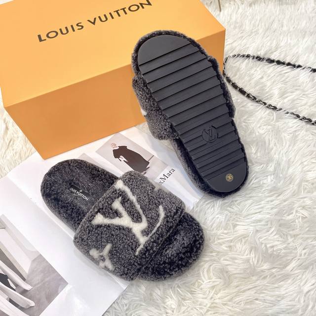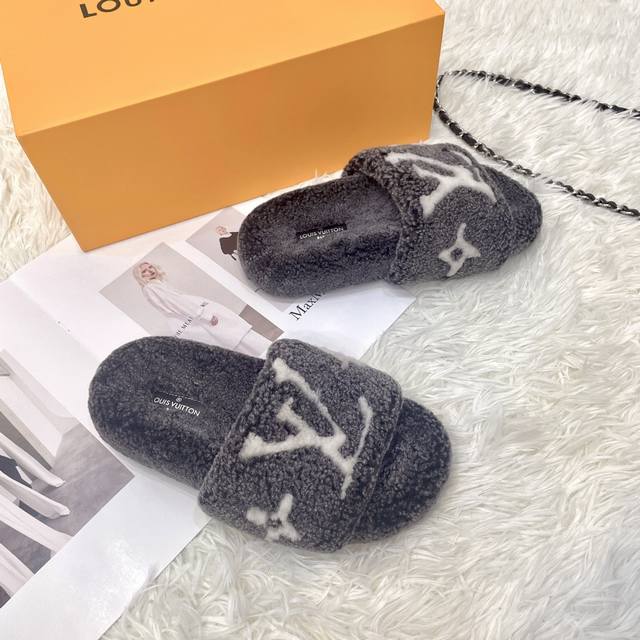 New Louis Vuitton LV Fleece Slippers with Dyed Finish. A super trendy, thick fleece slipper perfect for autumn and winter. Super comfortable! We only make genuine leather and lambskin slippers. The luxurious wool texture will make your feet even more beautiful, confident, and comfortable. A must-have for both home and outings. Material: Genuine leather and lambskin. Insole: Genuine leather and lambskin. Outsole: Durable rubber outsole. Sizes: 35