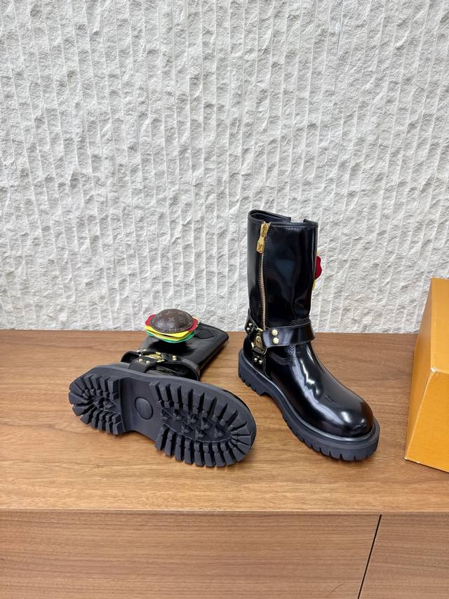 G566 Louis Vuitton X Timberland Collaboration Louis Vuitton 25Ss Fall/Winter New Lace-up Motorcycle Boots