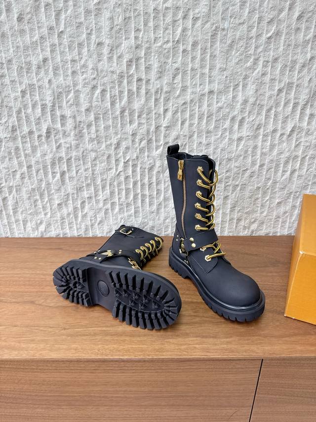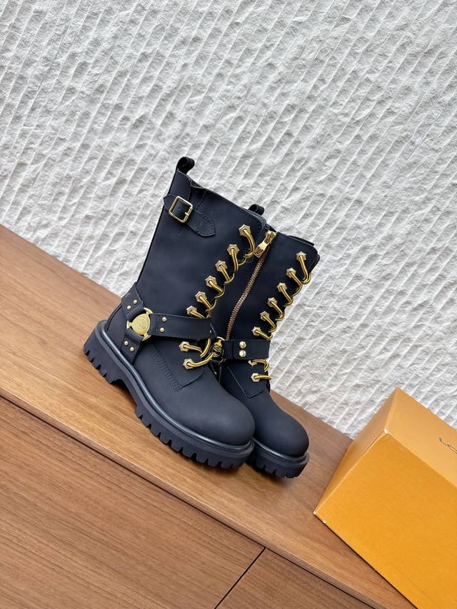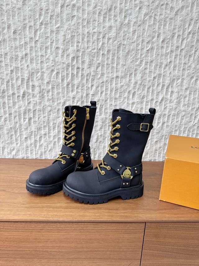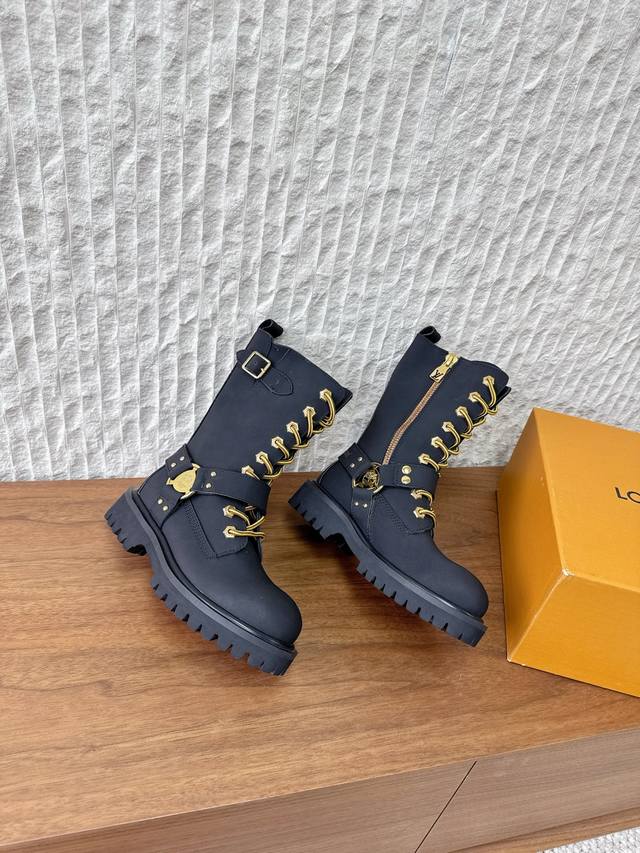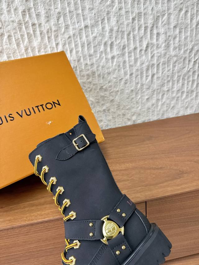 G566 Louis Vuitton X Timberland Collaboration Louis Vuitton 25Ss Fall/Winter New Lace-up Motorcycle Boots