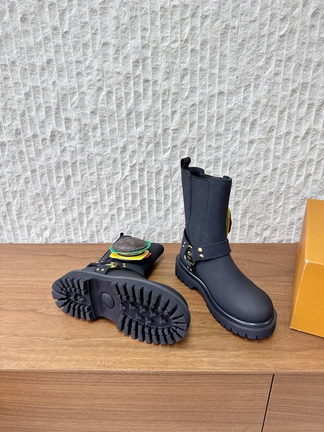 G566 Louis Vuitton X Timberland Collaboration Louis Vuitton 25Ss Fall/Winter New Lace-up Motorcycle Boots
